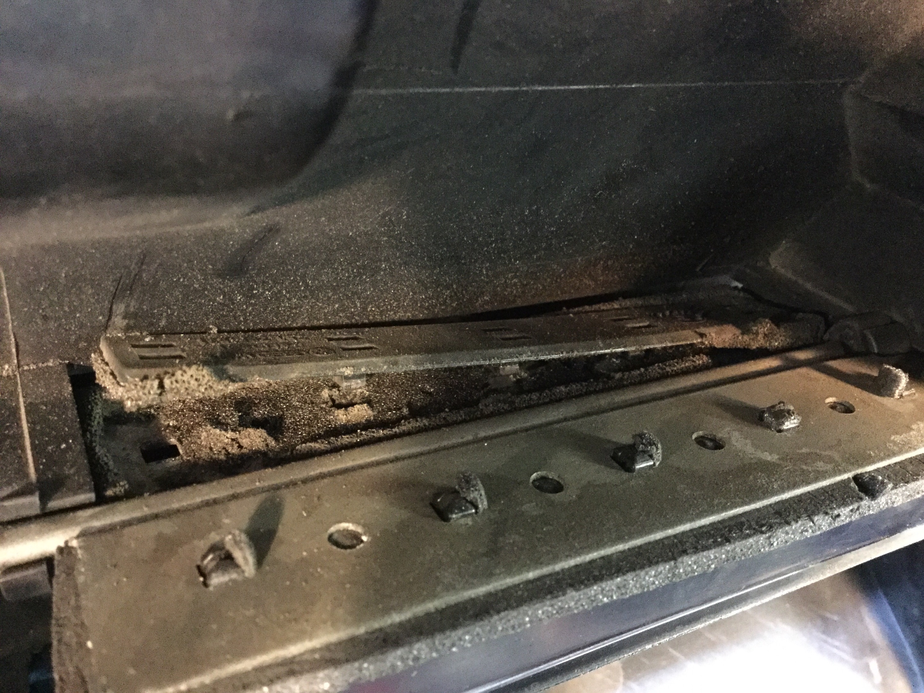 The foam I used to replace the rotten stuff is 38mm wide, 5mm thick adhesive backed open cell foam. It has a shiny plastic face which can, and was, peeled off. I got this foam at a local RV store. Oh and it has and adhesive backing which helps hold it in place when the plastic part is press back into place. It’s important to use a very compliant foam. You want the flaps to seal with little effort. If the foam is too stiff then the heater control lever and cable system isn’t really able to close the flaps fully.