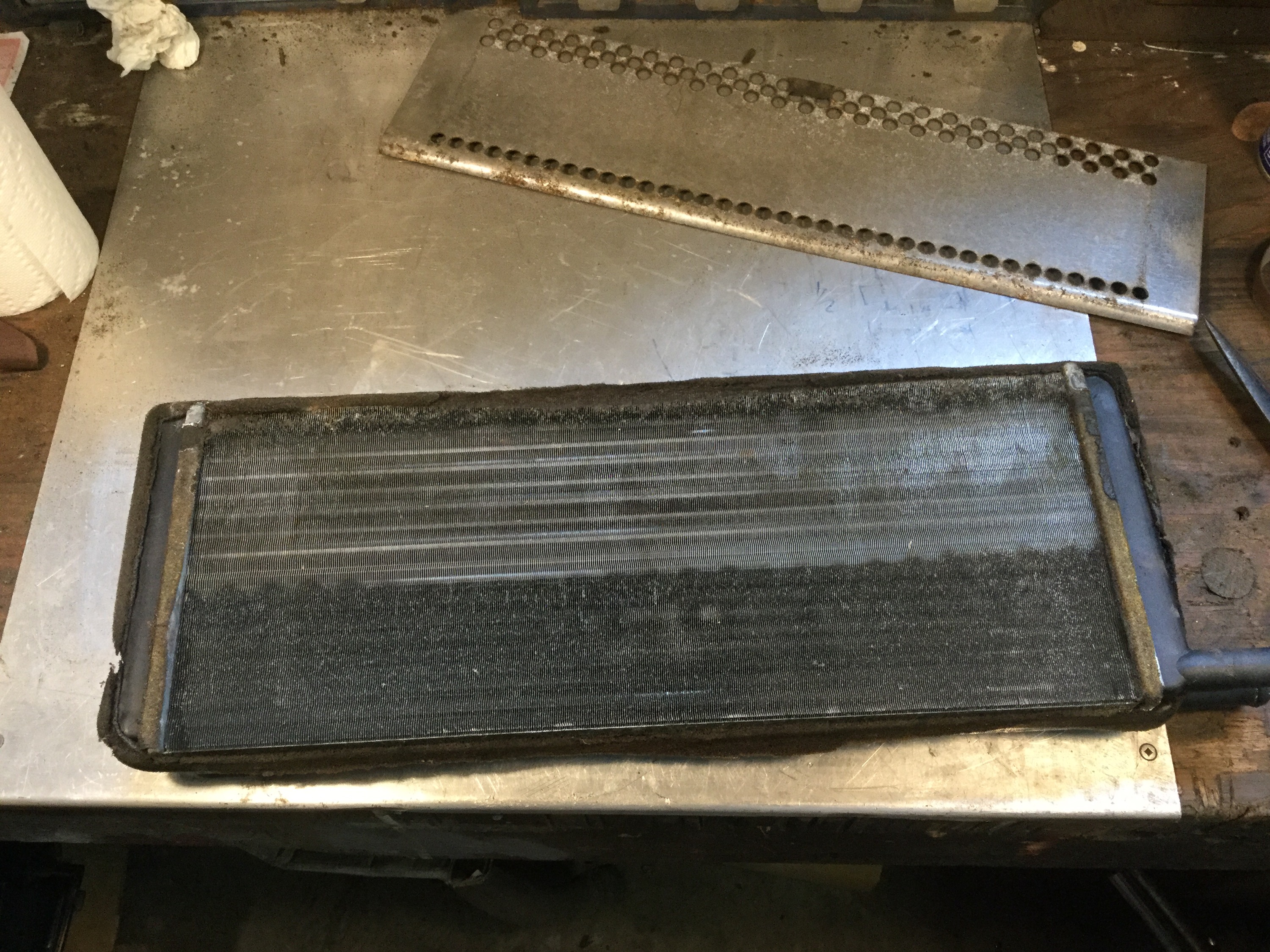 The fan motor was seized. I did loosen it up and I click get it to run, but it will be replaced. The foam on the flaps was all disintegrated. The heater core was dirty but sound. I’ll get back to the box later, next post will be about the pedal assembly.