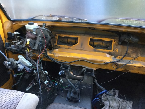 Last weekend I pulled the dash off the yellow Doka so that I could do a refurb of the heater box. It could have been worse, but of the six machine screws that hold the heater box on, the heads of two twisted off, and another had to have head drilled off and stub removed with vice grips.