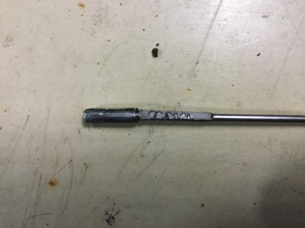 I replaced the starter bushing in the bell housing. Used a 7/16″ tap and screwed the tap into the old bushing and as the tap bottomed out in the hole the bushing screwed up on the tap and out. New bushing was a bronze, oilite type bushing so I soaked in oil before hand and gave it a bit of pressure between fingers with bushing filled with oil. Fingers on open ends. I thought getting the bushing in place would be tricky so I made a quick install tool from some brass rod. Rod turned down to fit snugly in the bore of the bushing, shoulder on the rod, and the turned down section just a little longer than the bushing length so I could feel the entrance to the hole. That worked out pretty good.