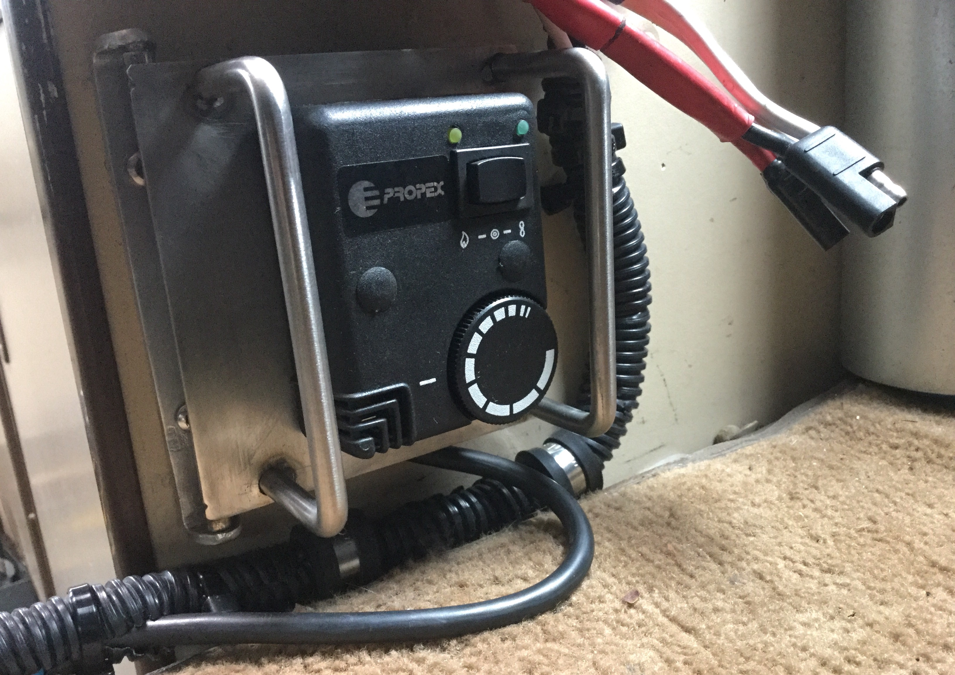 The heater really throws out the hot air. Without a diffuser on the outlet it’s an air stream like a hairdryer. And it’s not whisper quiet. But it will heat the van and that’s the important thing