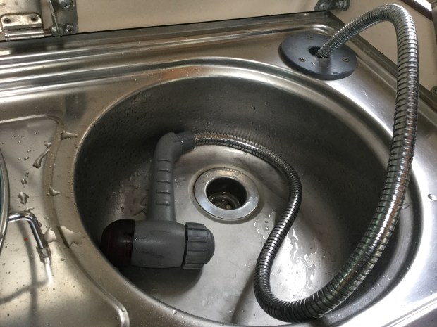 It works ok I guess, had to adap the outlet to match the Westy plumbing. But it didn’t push as much water as I had hoped. For years I have been using a Eurovan Westy extendable faucet and I had dreams of being able to pull the faucet out through the sliding window and get a refreshing blast of cooling water on a hot summer day. Especially because the faucet has a spray setting. With the bilge pump, and the stock Westy pump before, the promised spray wasn’t that impressive.