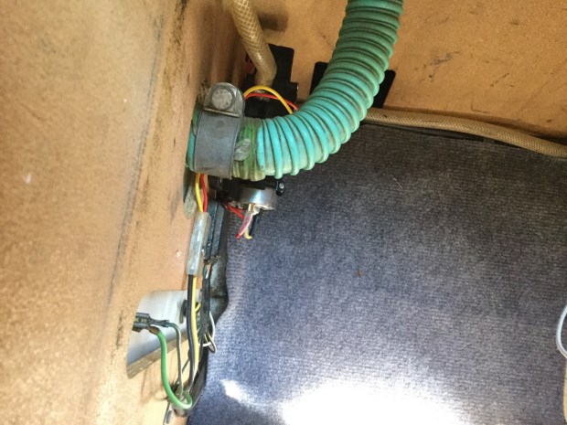 There is one, or maybe two, more things I’d like to add the the install. First one I will certainly will do, and that is add a relay back up front under the sink. You see, the eurovan faucet wiring is pretty skinny stuff. It’s not a long run from where it connects to existing wiring, but I’d rather that the switch is not handling the full 2.5 A of pump draw.
