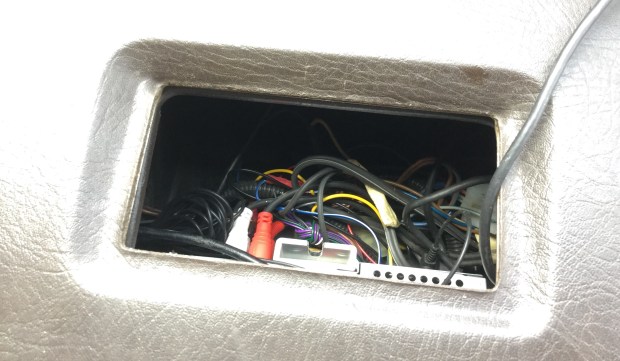 So back to the new unit, it has no CD player so it’s about half the depth of the old one and despite the inevitable rat’s nest of wires coming out of the back (again including three pairs of RCA jacked cables and an USB cable) it fits delightfully easily into the van.