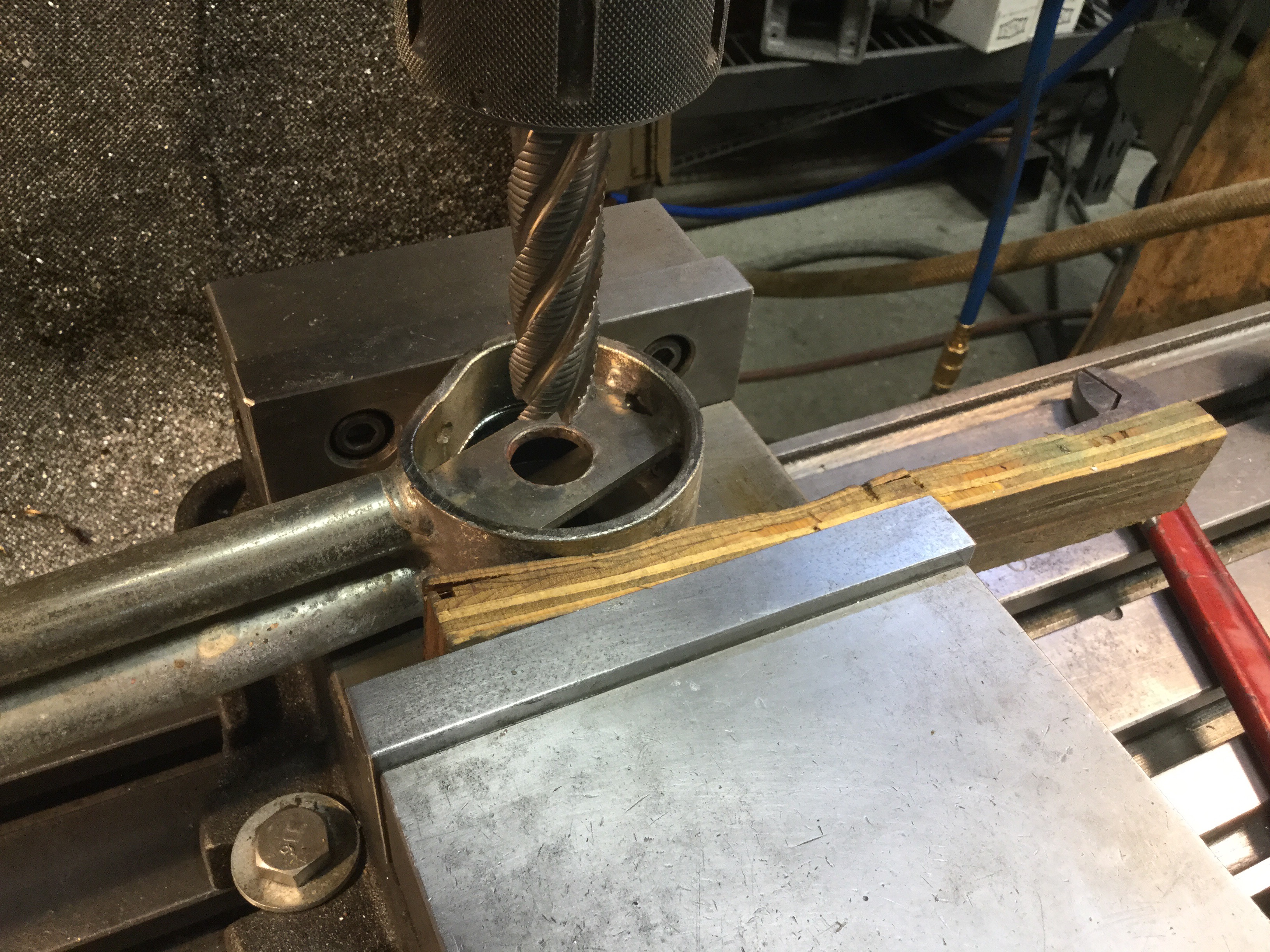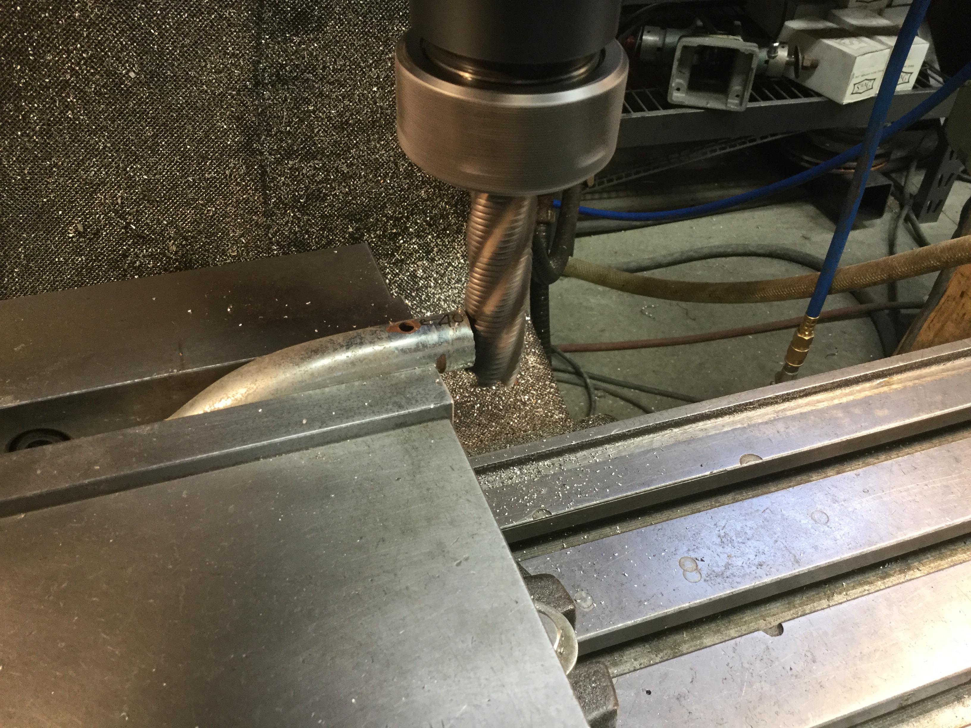 I cut off the worn end of the cross bar and milled back square. Still using the 7/8″ roughing end mill. Oh how I love that tool.