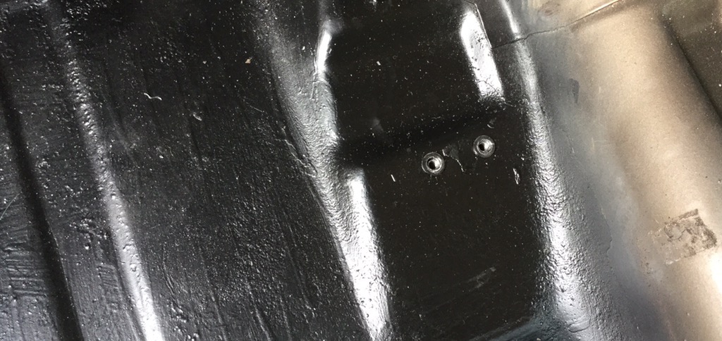The stock pedal was attached to the floor by a couple of pop rivets. I drilled them out and enlarged the holes to take a pair of 10-24 threaded inserts ( I don’t have any metric threaded inserts) .