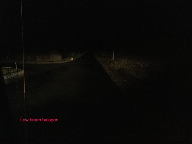 Even though the pics don’t give a true representation of the lights, I think they do show that on high beams the halogens seem to shine further , or at least reflect back from a further distance. But then again it’s not super distinct.
