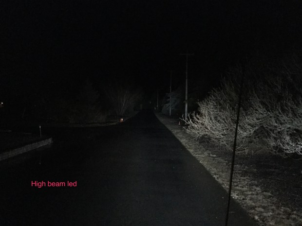 Second, I am having a hard time quantifying or even describing clearly my perception that the high beam distance projection seems less with the led bulb. I think you’ll just have to take my opinion on this for what it’s worth.