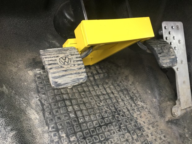 Re Alan’s comments about a lock to keep granny gear or reverse engaged: at one point I started acquiring parts to do just that for my old mustang. I bought a power door lock solenoid and was planning to have it operate a hardened steel pin that would run through the existing holes in the shift linkage assembly stopping the parts from moving (it was actually the neutral alignment hole in a Hurst Competition Plus shifter so I would have had to drill an extra hole through the reverse plate so i could lock it in reverse). Although I suppose if one did add something like that to our vans, a potential thief would likely break the shifter in an attempt to get it to move, so … yes, AB’s idea of an e-brake handle lock sounds best to go along with the clutch/brake pedal lock.