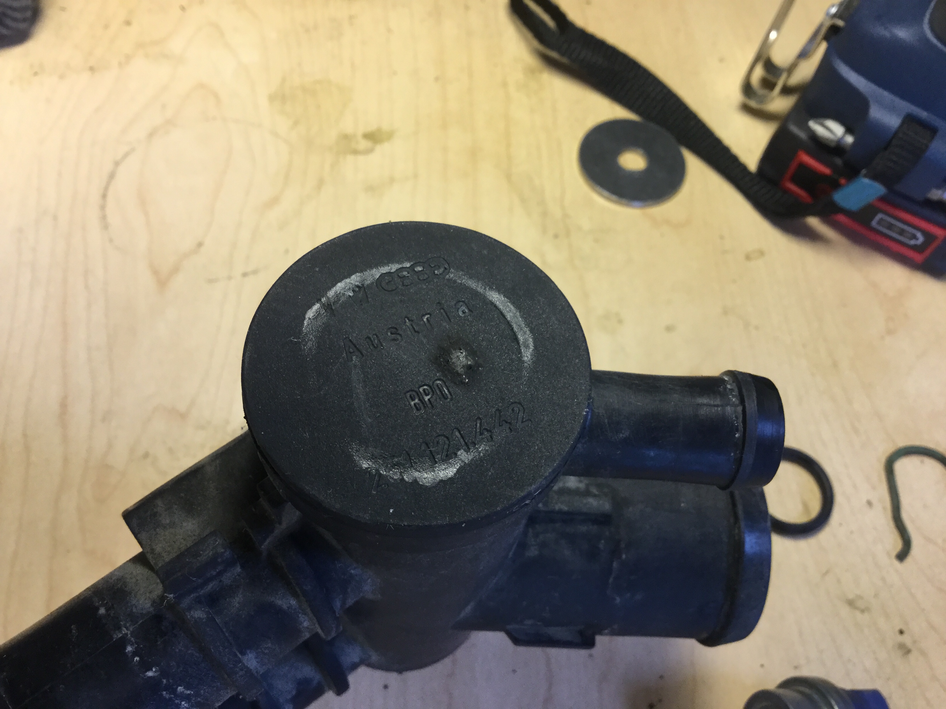 I’d always wanted to do this but what got me off my duff was my manifold had the additional feature of a temp sensor plug in one end. This is for the optional webasto aux heater that warms the coolant and thus the heater box. It was fairly common on Canadian spec Syncro.
