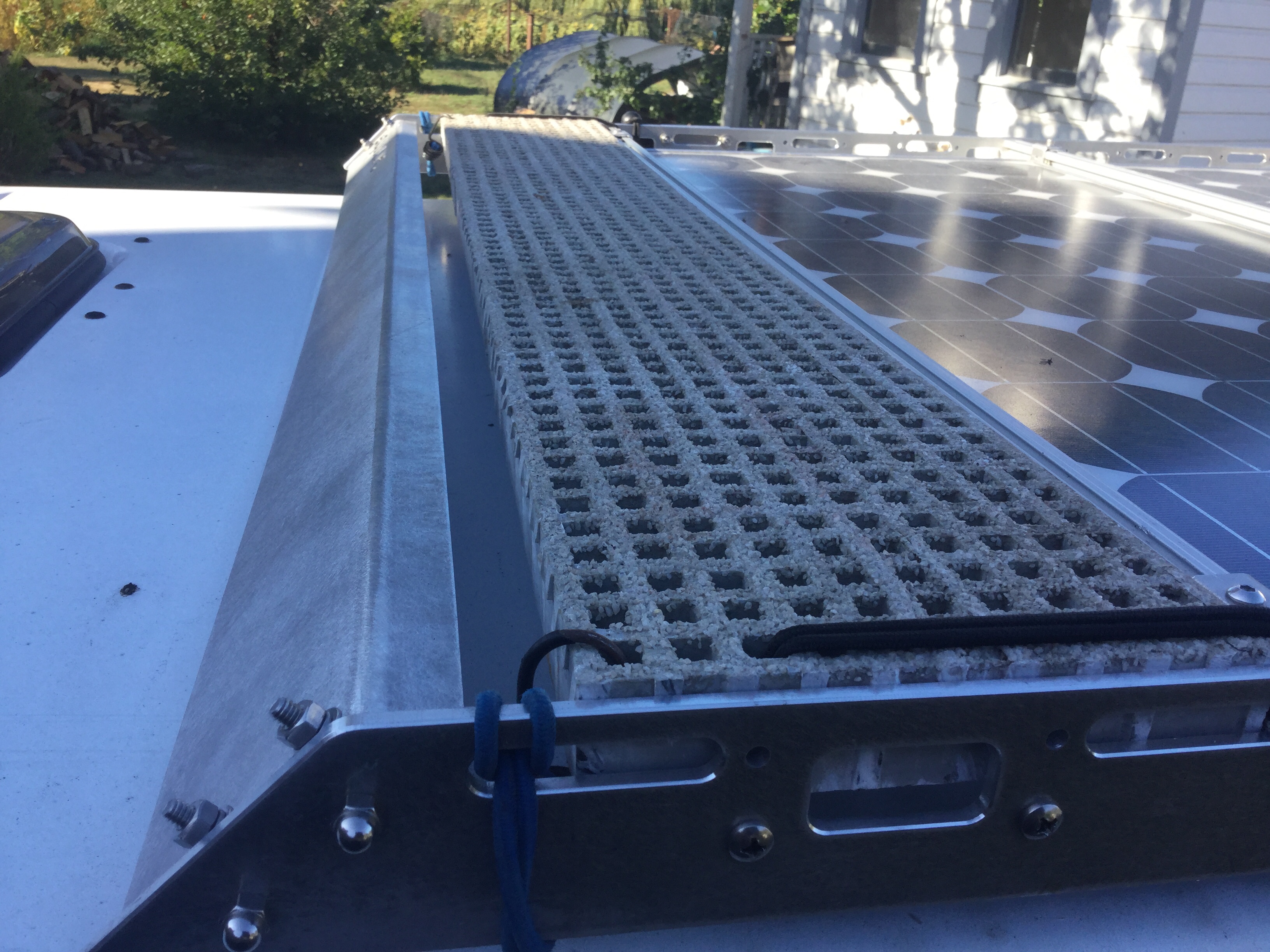 Still being worked on, as is, it’s fine. But front dam shape and side rail shape modified on the next version which is about to be powder coated black. Note that through complete luck, I can store one fiberglass bridging ladder up front. And disregard the clumsy fasteners used on front dam, that was just because… ran out of the correct ones.