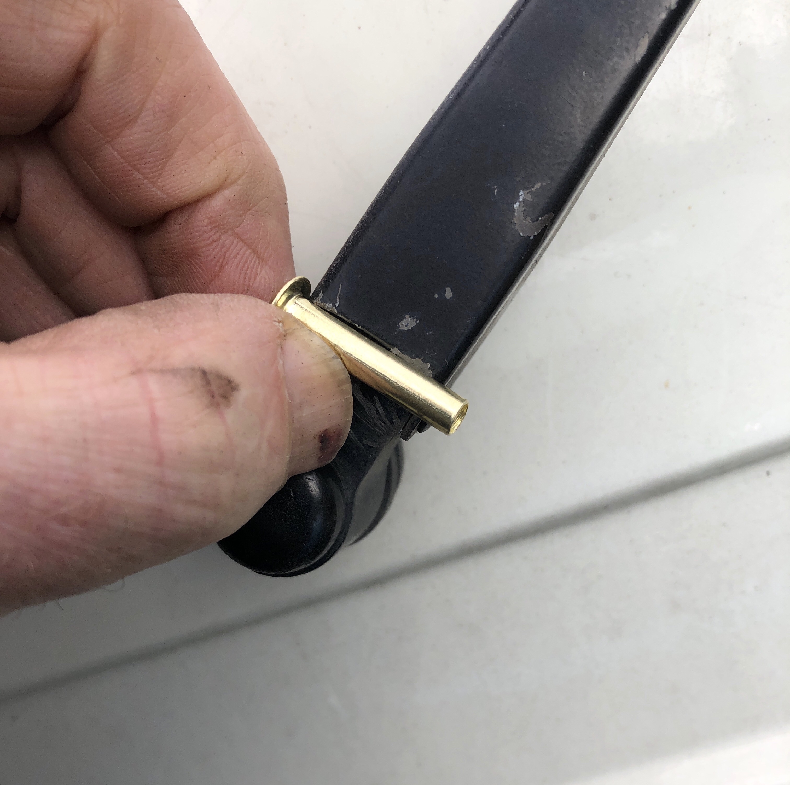 Funny thing they are called M5 Chicago screws, but the actual screw portion is M3. Pictures show better. Oh and you’d have to trim the length a tad. Is brass hard wearing and strong enough? I think so.