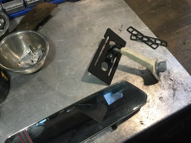 It’s just simple tab and slot construction, plug welded. I used 3/16″ aluminum. The uprights get spread a bit after welding just the get the mirror stalk ball in. You do know the vanagon mirror stalk pops off the mirror don’t you? And you do know the mirror stalk comes away from the van ceiling with a firm twist, clockwise or anti.