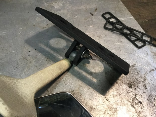 Here’s a quick and dirty way of mounting one of those back up cam digital mirrors. The mirror is supposed to be clamped on to the existing stock mirror, but that looks very clunky. I’ve got a somewhat less clunky answer.