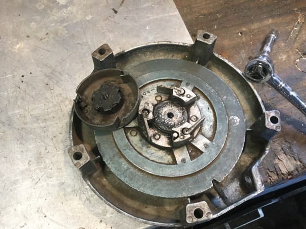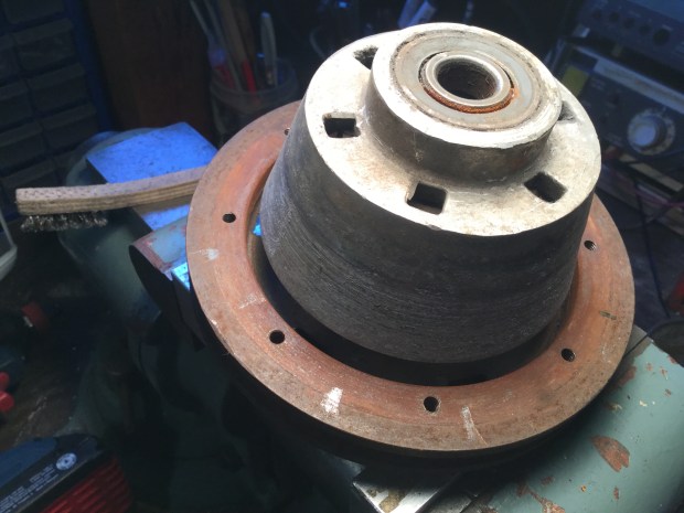 – took apart conical clutch and skimmed surface on lathe, trimmed friction band to fit better