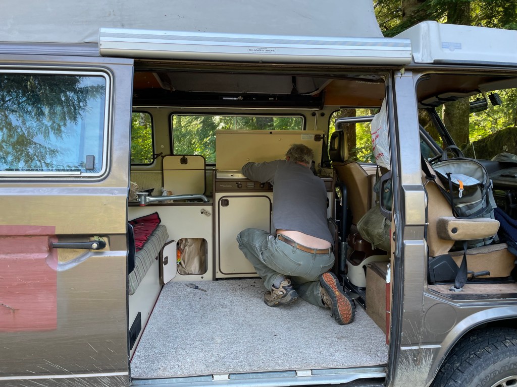 The day after fixing the coolant hose problem we went on a trip. Of course, I was nervous. Maybe foolhardy to go off on such a trip , out of cell coverage, long walks to get help, without doing a better shake down of the van. A 35 year old van. But off we went anyway 🙂