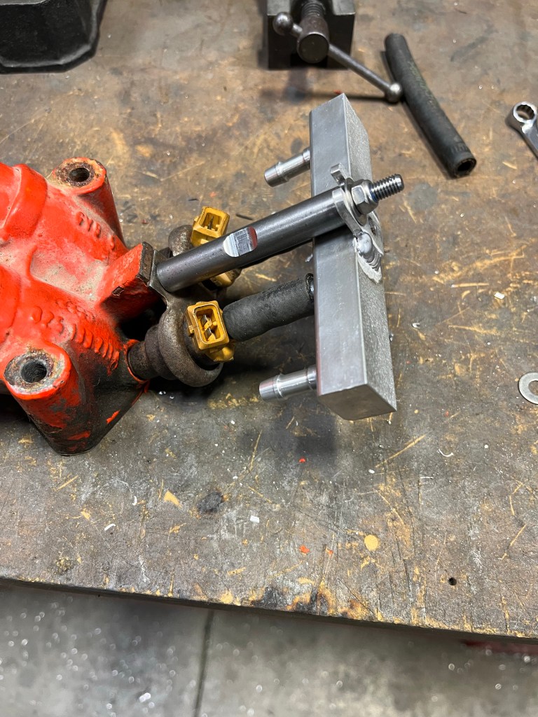 Made a fuel rail a few weeks ago for fun. Trying out a tool and tool path. No need to do this, lots of commercial options. Last Friday I made a support for the rail, fitted up on old injectors and runners. No rubber on the injectors. And yes I have drilled and plugged , but not welded, the rail. Surprise for me is how sturdy the set up is