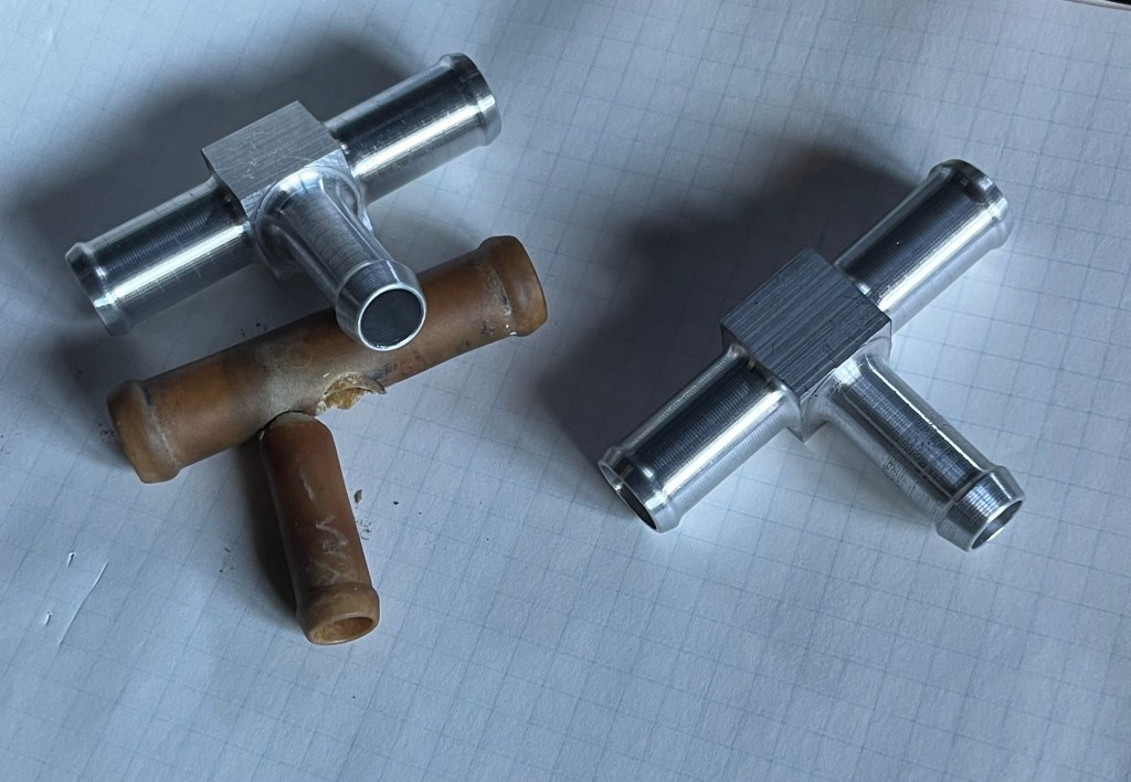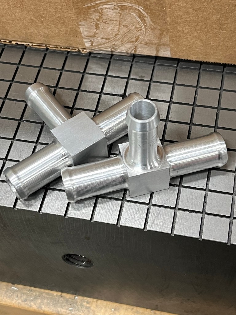 Made a pair from 6061, 3/4” thick stock. Also bought 15’ of gates heater hose to replace the runs from tees to rear heater.