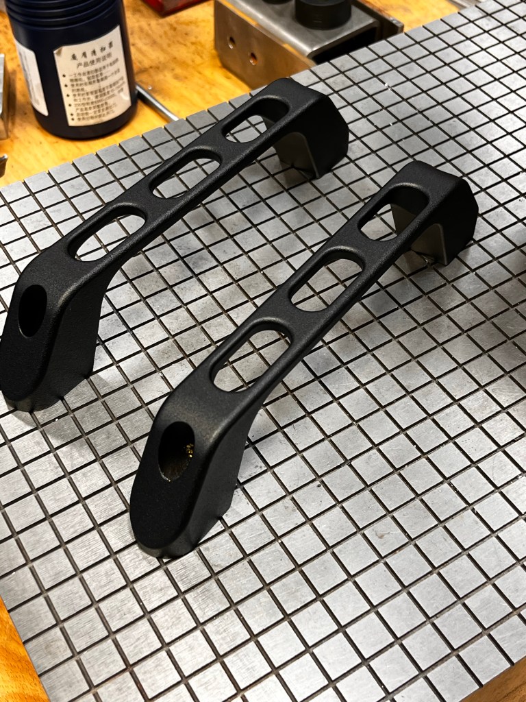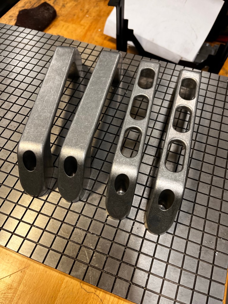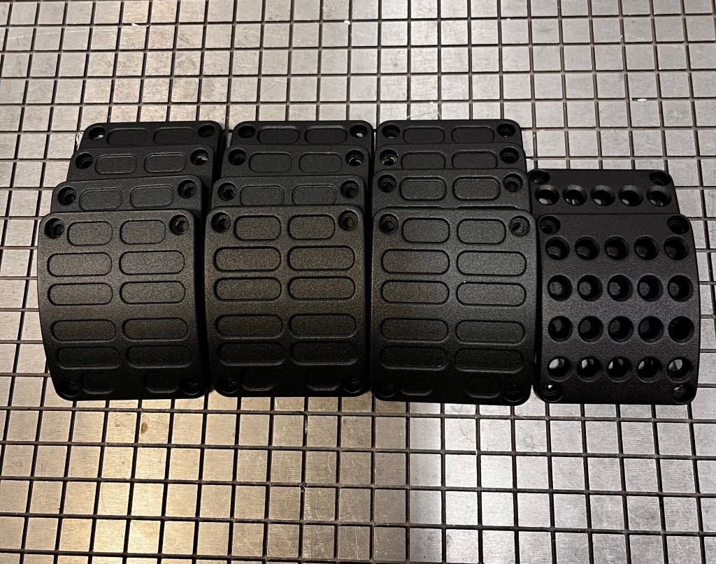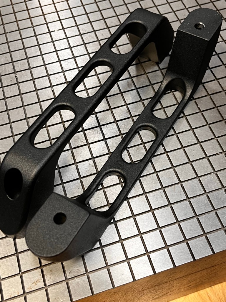 Nest up are more pedal pads. I think I’m close to a good version. There’s a pic here of a few of my prototypes. The powder coated black ones are what I’m going with