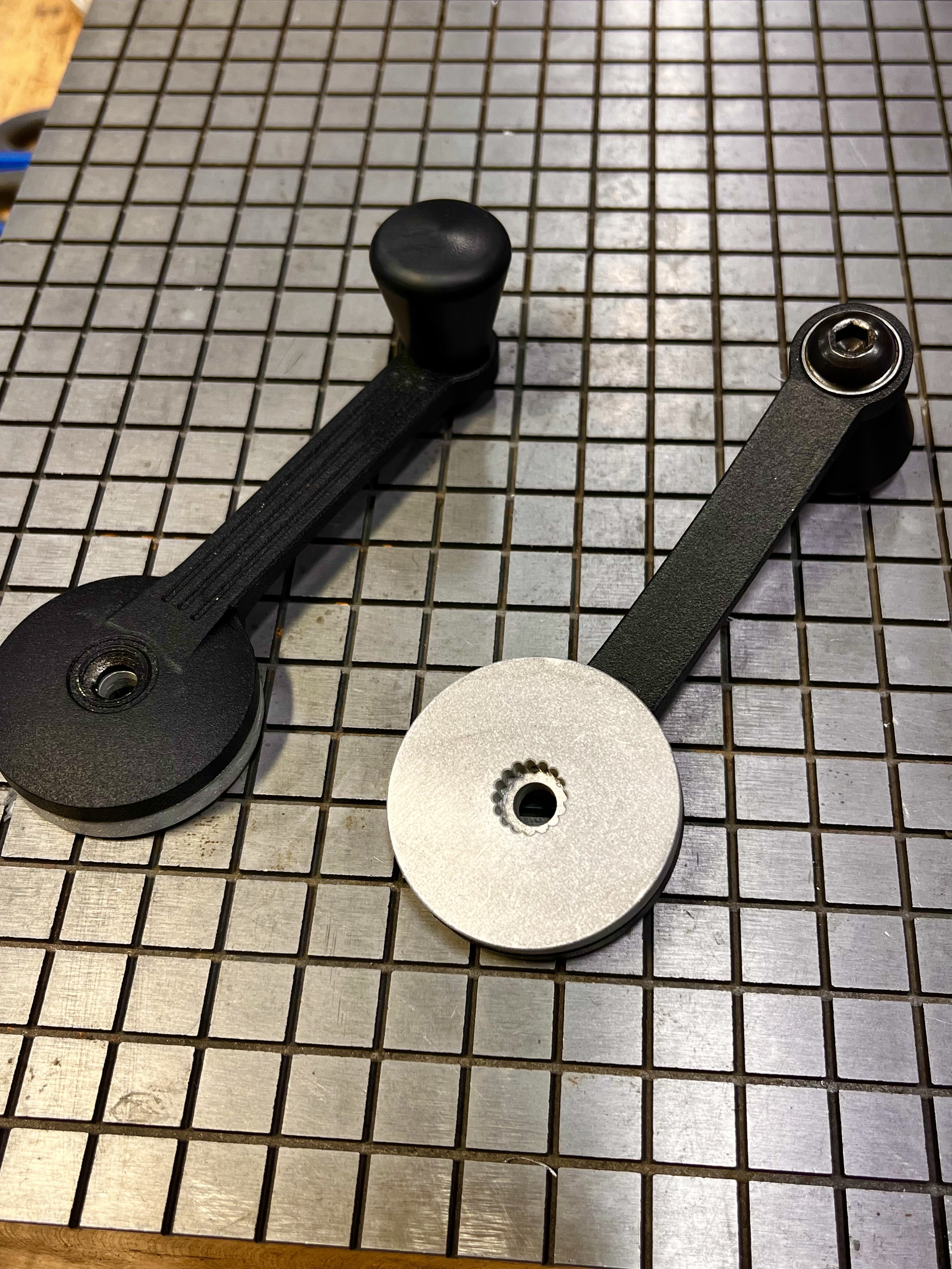 I think I’ll revisit this project soon and do a bent handle for more clearance. I’ll keep the delrin knob as I like that better than the knurled knob on the GW handles ( been using them for a year, I find the knurled knob kinda not great).