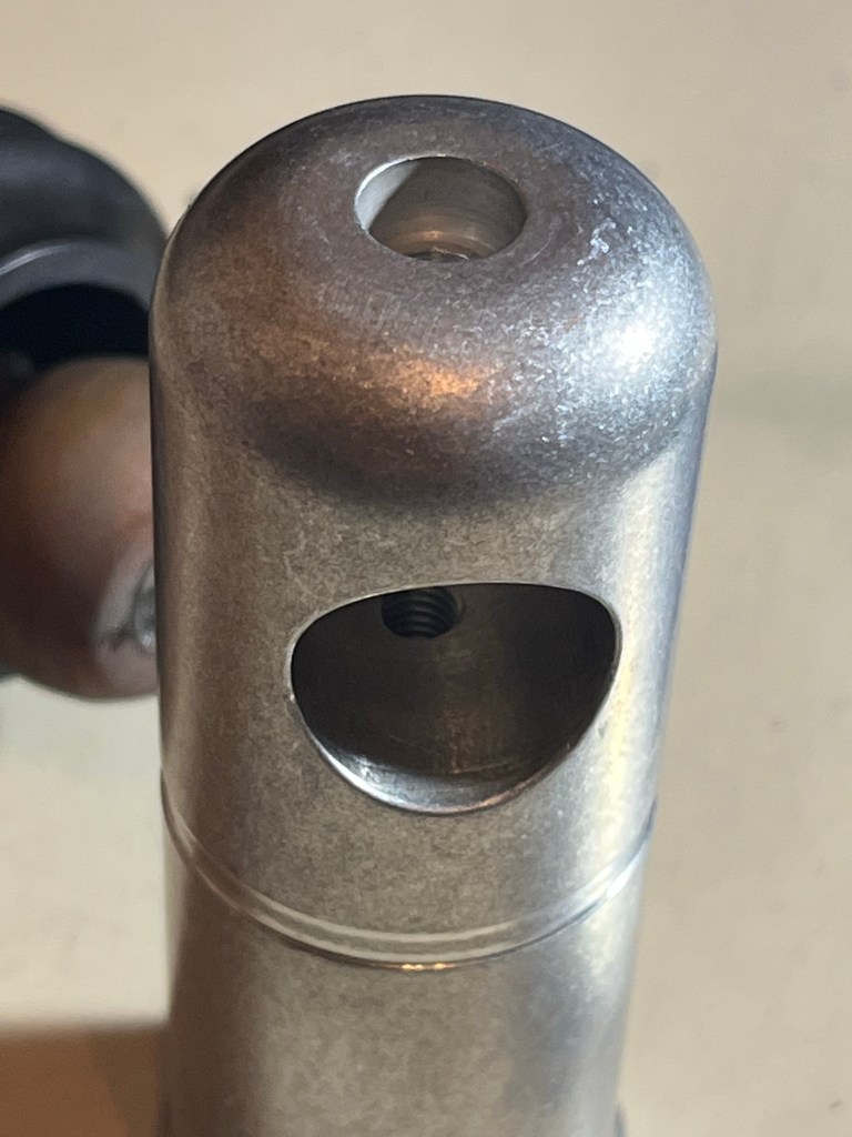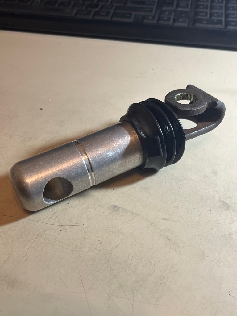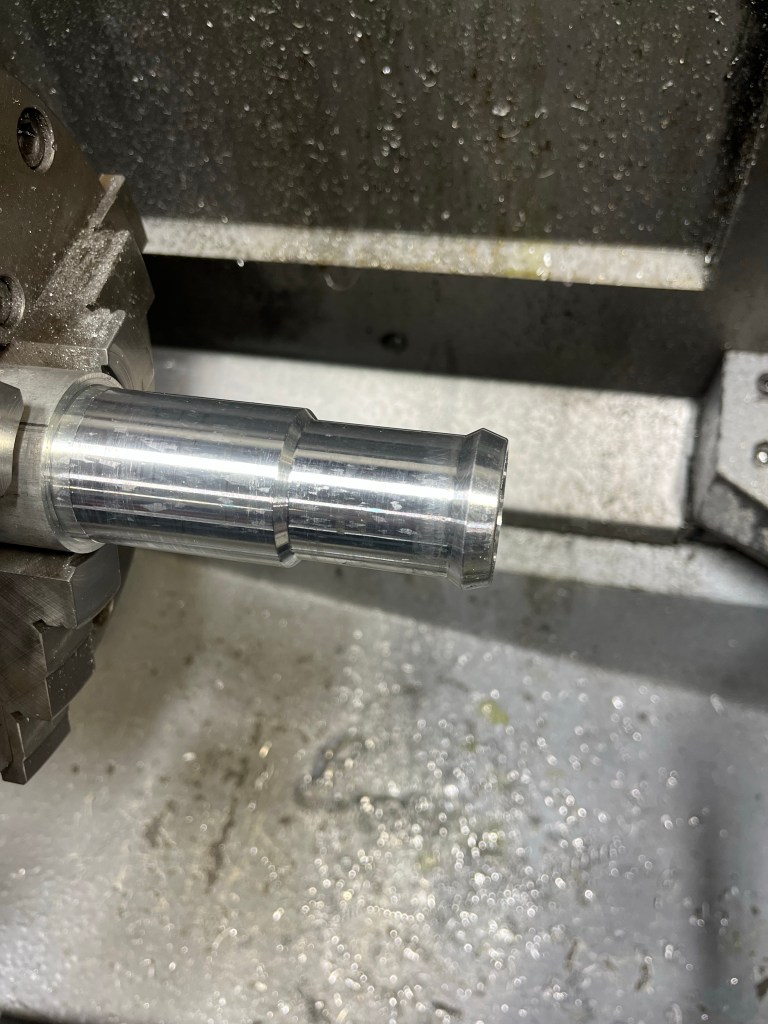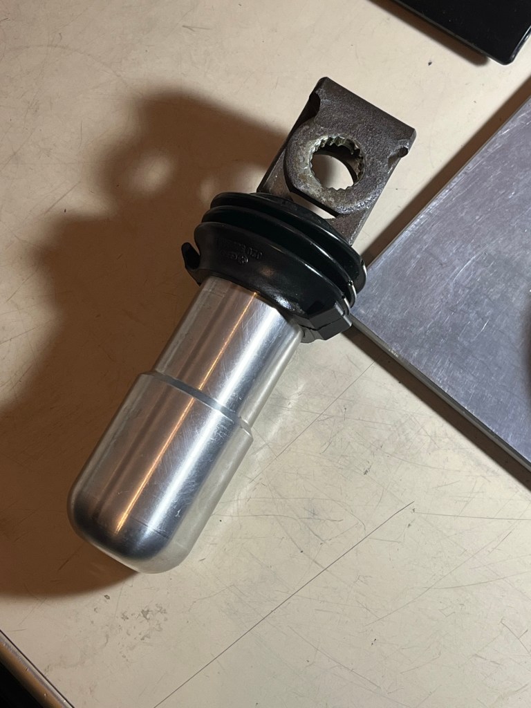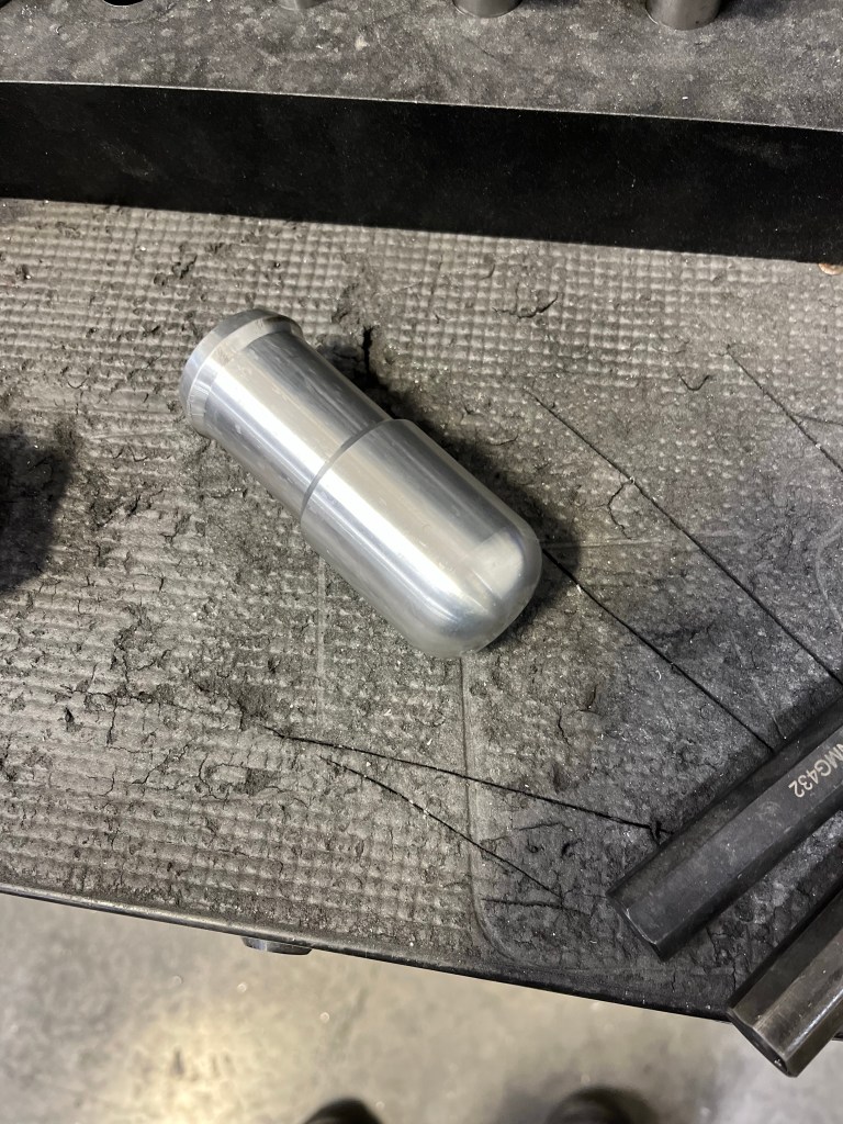 The idea of the spiral grooves is to retain some grease … that’s a tumbled finish on the part, gonna paint it. Bore hasn’t been deburred in this pic. The end has a rim to help keep the boot on.
