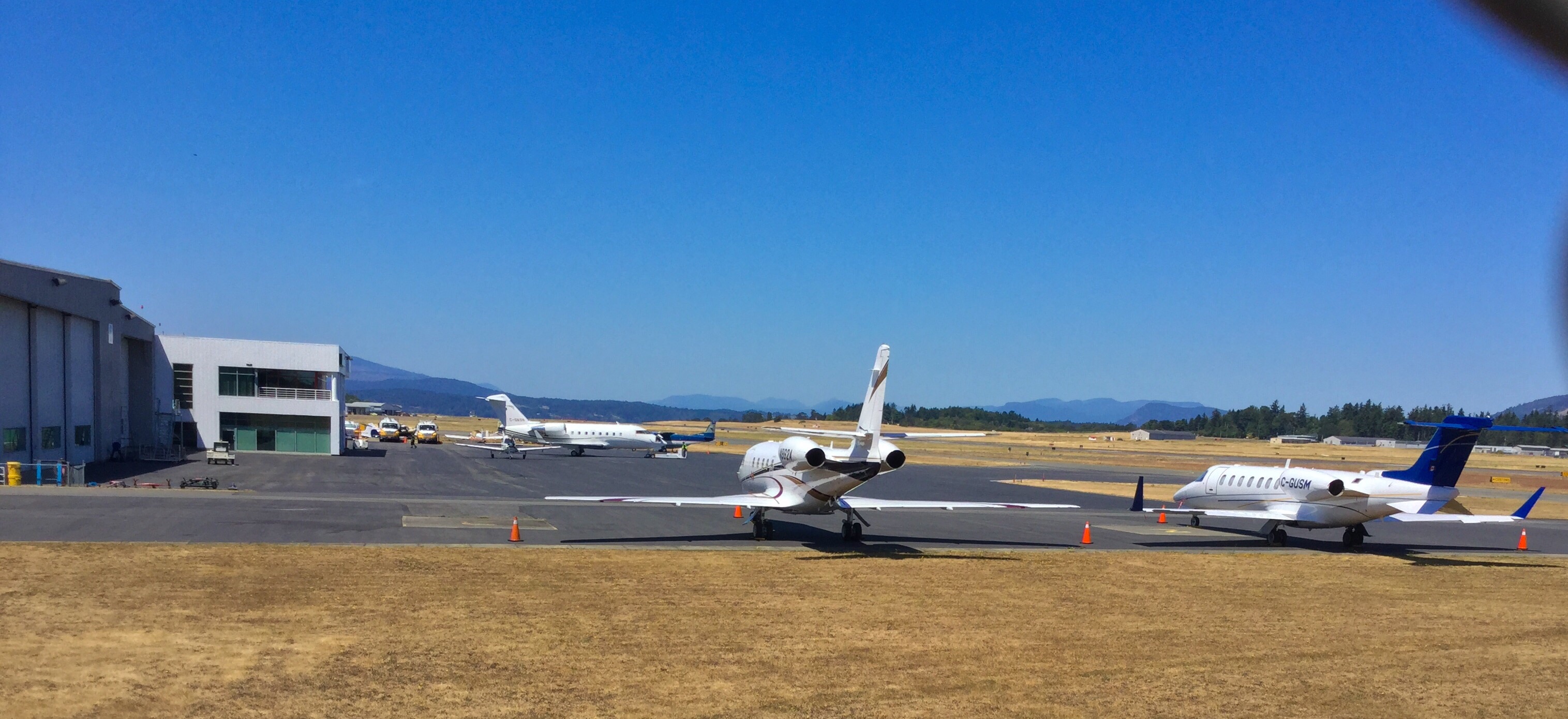 Maybe Angus will ID the jets? Update: he did – Challenger 604 on the right, and probably a Gulfstream G450 on the left.