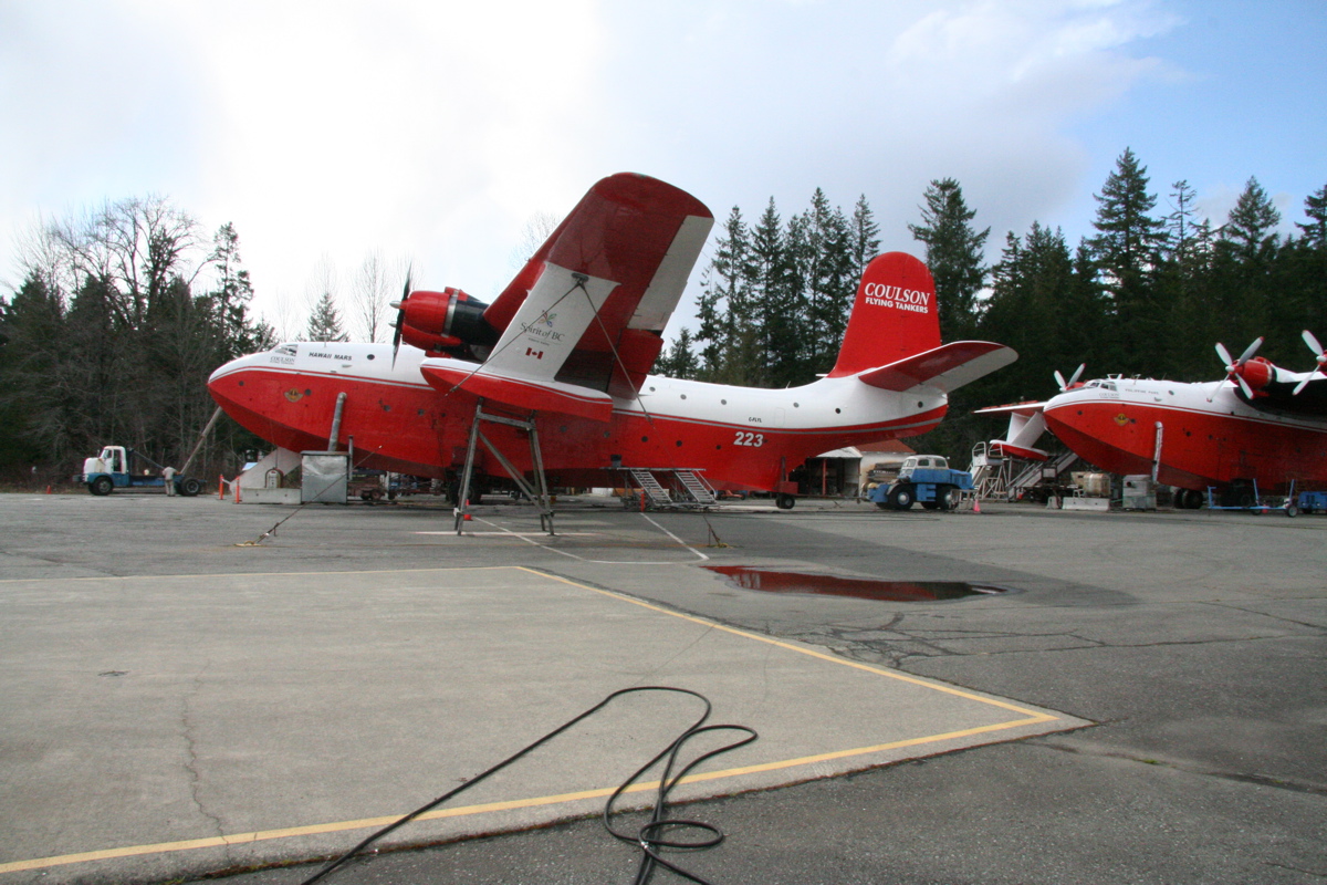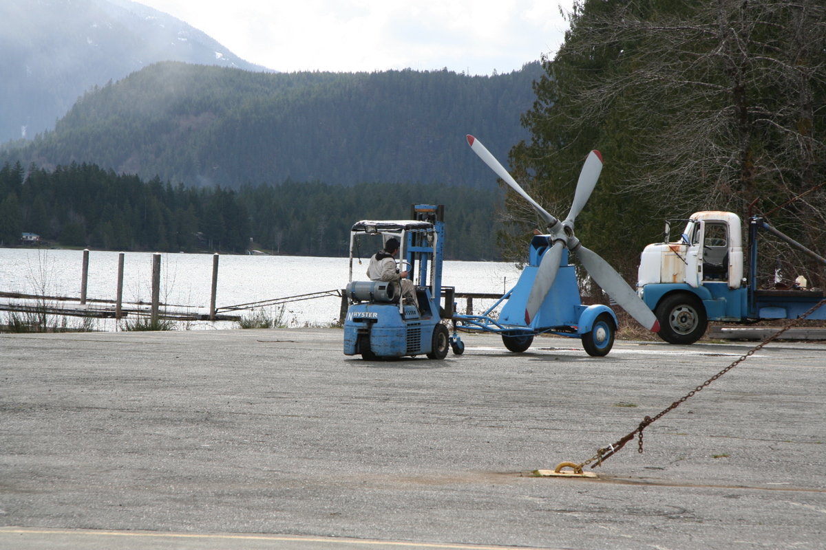 Not at my local airport, but at Sproat Lake near Port Alberni. One of the planes was having a prop removed.