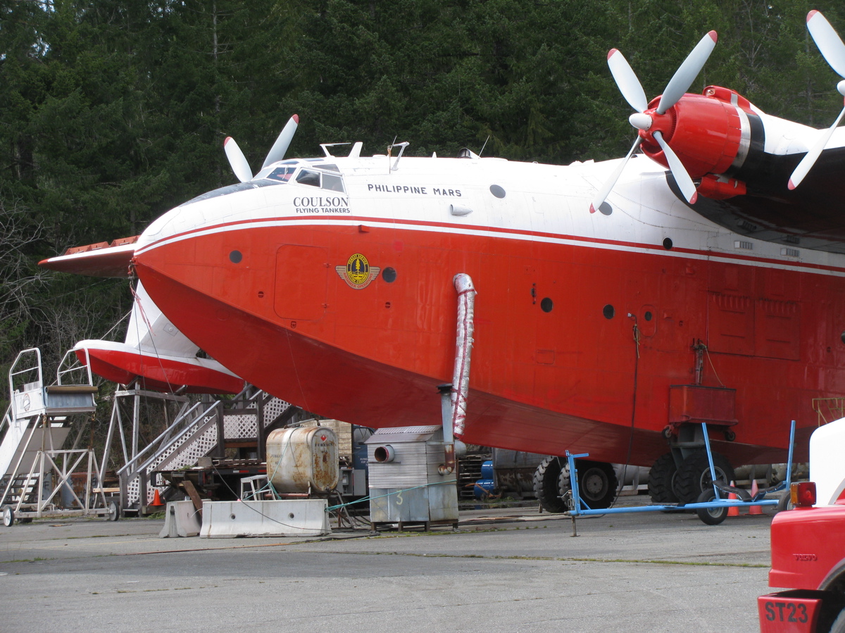 The aircraft is big — really big. It is 120 feet long with a 200-foot wingspan and has the ability to drop 25,000 litres of water in one pass. Moving it from the water to the museum will take several days.