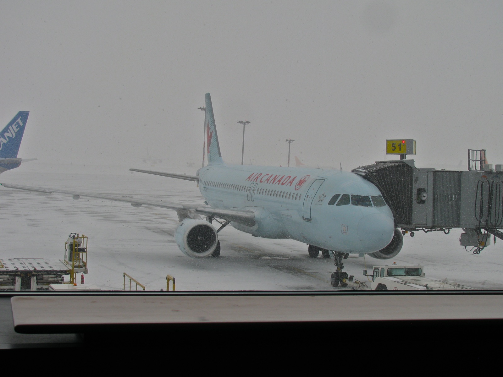 Waiting for connecting flight, I’m wishing I could get out into the snow. Airbus A320 (or is it an A319?) here.