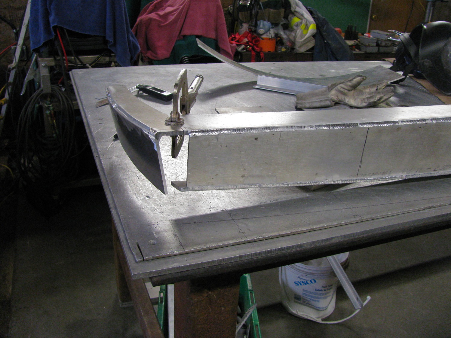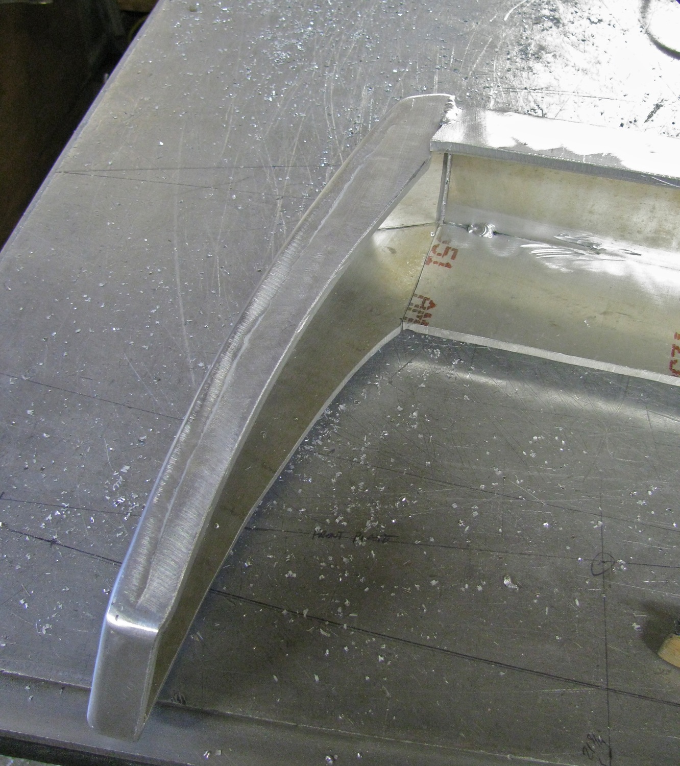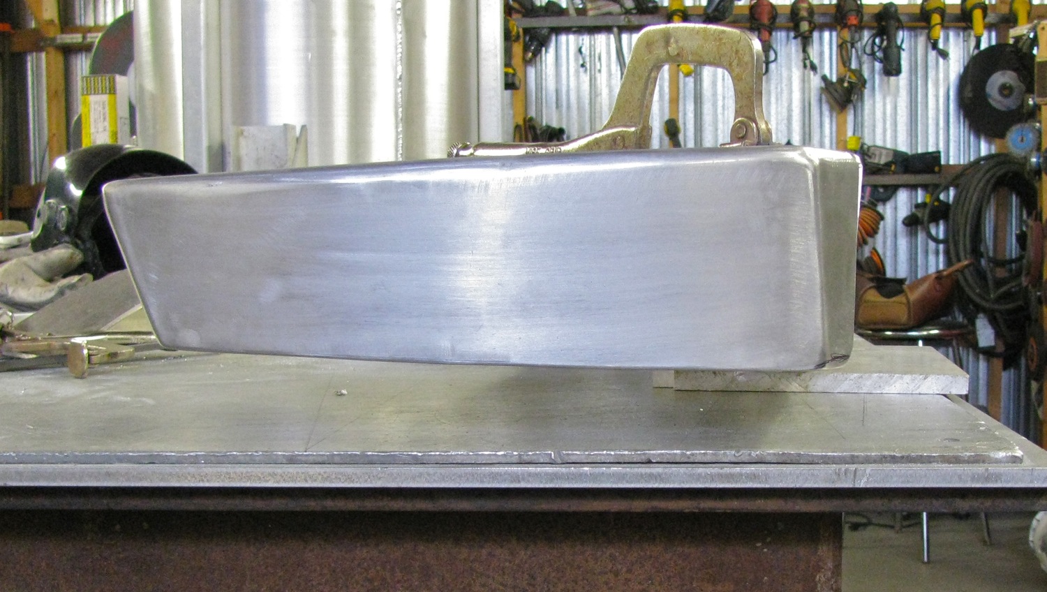 A little progress made on this project. Made up a more or less matching end cap and also did some preliminary grinding out of the welds. What a chore this way of making a bumper this is. You understand don’t you, that this is me making it up as I go along, modelling (I can hardly say sculpting can I?) a bumper out of aluminum plate. Once I get a shape that I like and that works then I can take measurements and think about how you could make one easier and faster.