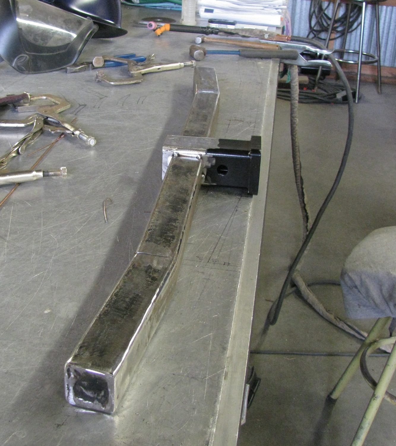 I’ll blame good friend Simon for the recent dearth of posts, you might understand why at the end of this post. The bumper is pretty well roughed out and before I can finish the aluminum I need to make a trailer hitch to fit behind. I do have one of those tow loop mounted hitches but I want something stronger.