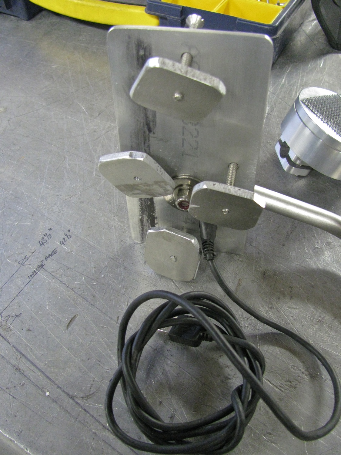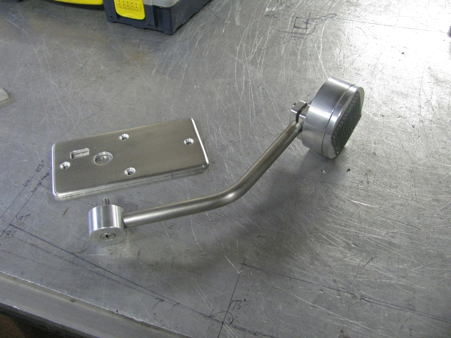 I didn’t like the high position of this mount so back to the bench. More bits of scrap aluminum, some 0.5″ stainless tubing, and further dicking around ended up with something that looks more surgical than automotive. Man, I need some sense.