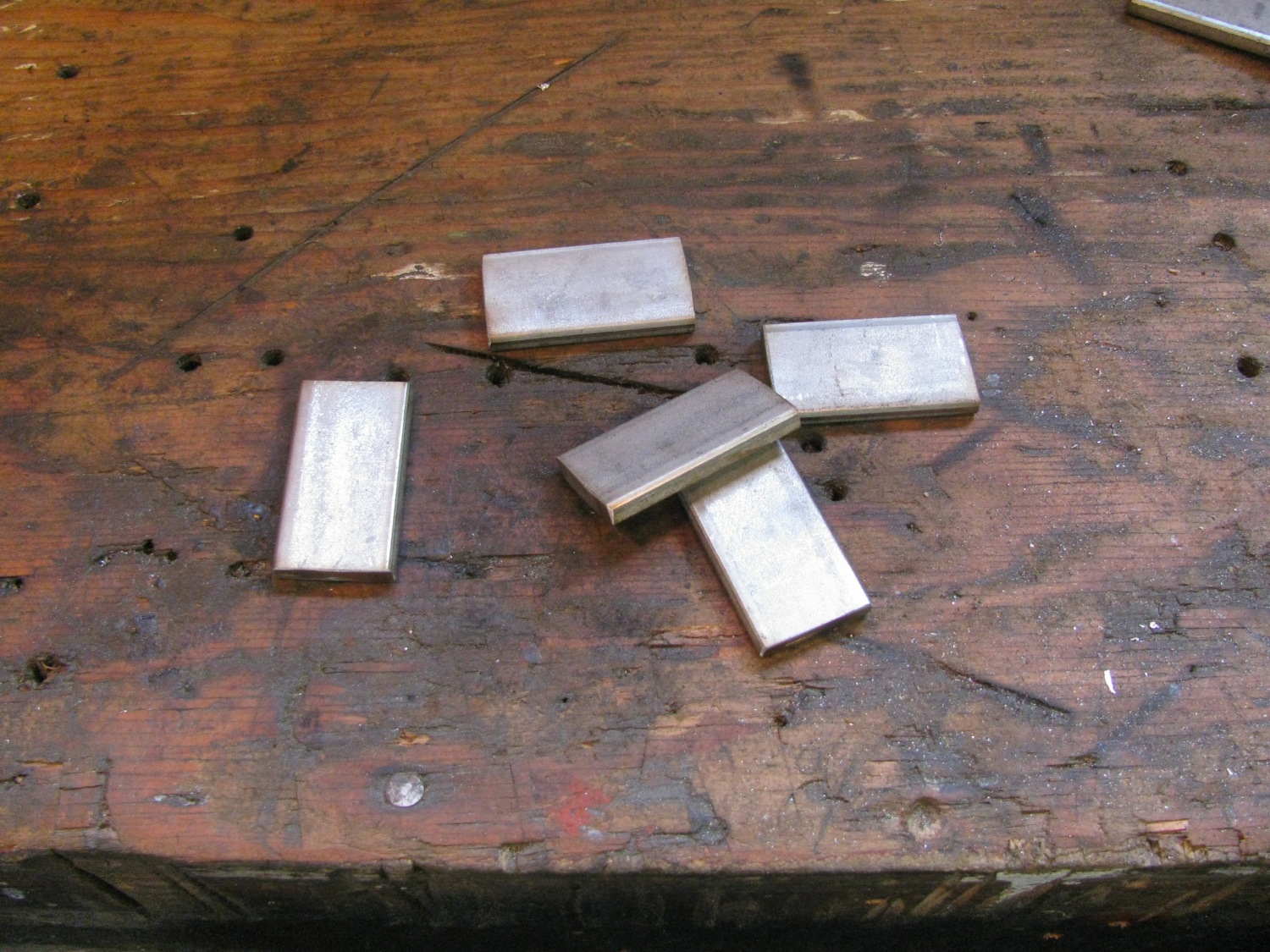 A bit of 1″ X 0.25″ stainless flat bar cut up into 5 pieces, nominally 2″ long. Very nominally as I used a Zip disk in an angle grinder and I am notoriously bad at cutting a straight line.