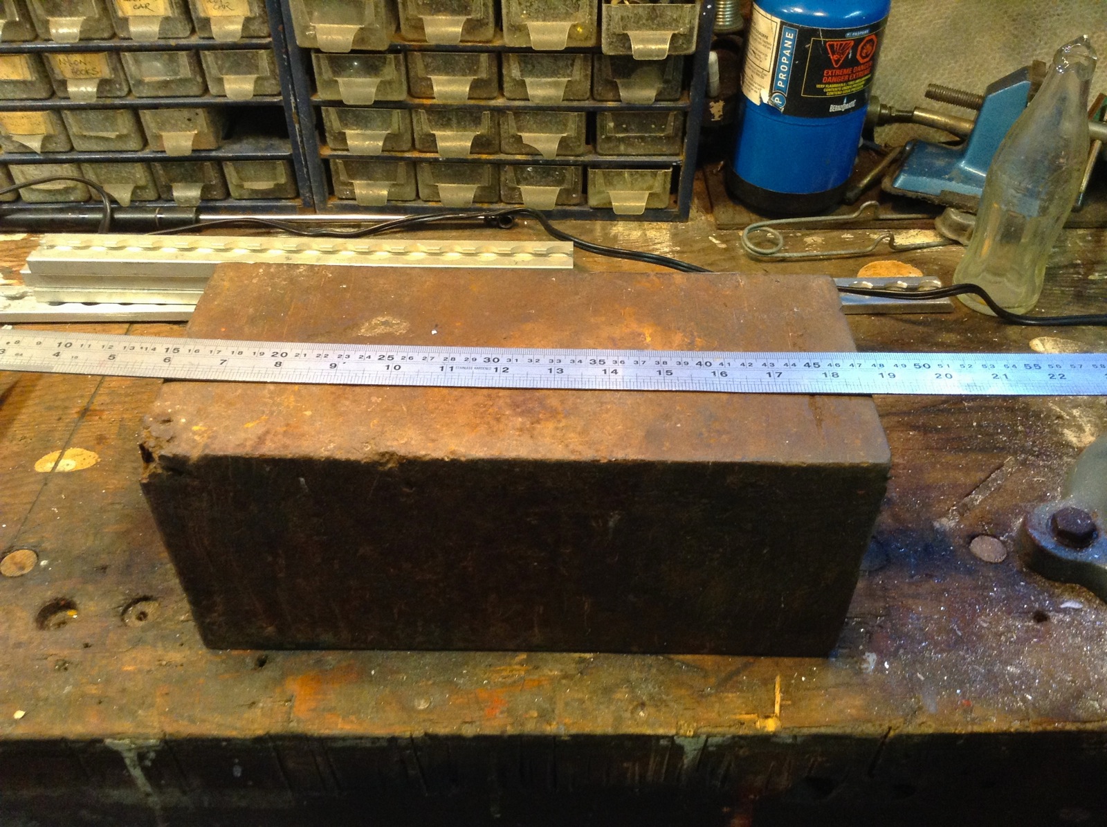 Well I say iron, but it could be steel. Measures 5 1/2″ X 5 1/2″ X 12 3/4″ ( 140 mm X 140 mm X 343 mm).