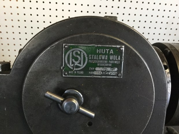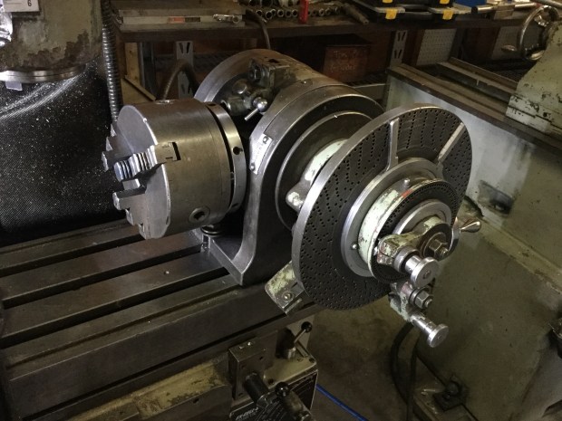 workplace purchase from recent auction at local metal work da Tory that went out of business, Ramsey Machine Works. No keen competition on the bidding on this item, I think we got it’d for 175 bucks. It looks like a very close copy of a cincinatti dividing head. It’s heavy, I can’t easily lift it and it take two to place it on the mill without bursting a gut.