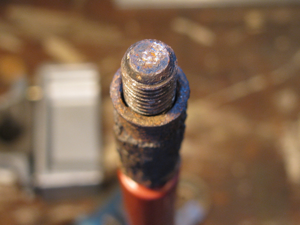 Movable jaw removed. Look at the casting at the end of the screw, you can kinda imagine it has an angled face on the underside. That angled face presses on the flat side of the hemisphere. Also note the rust etching on the ways, where the jaw had been parked. The vide was sitting outside, getting oh so rusty.