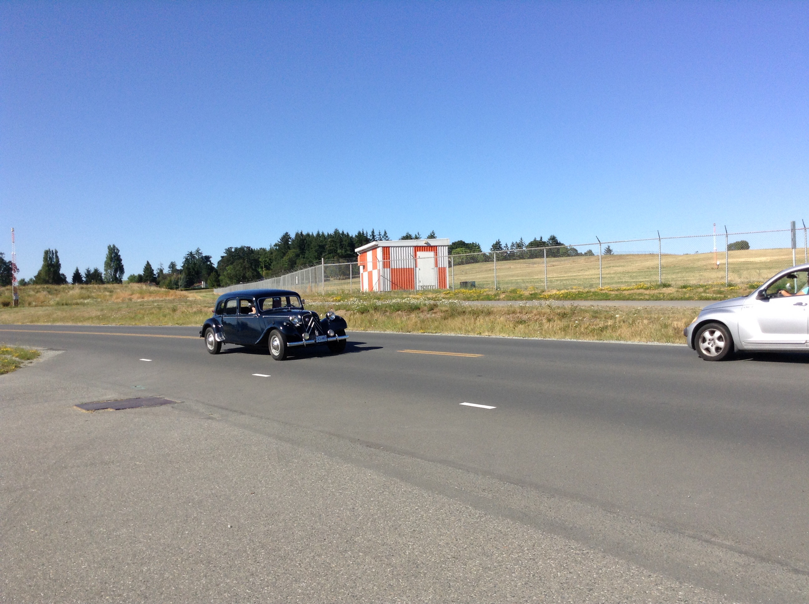 Noticed it at intersection to road I was driving on, pulled over further on ( right where float planes get ferried across from airport to Patricia Bay) and grabbed the iPad mini from its mount.