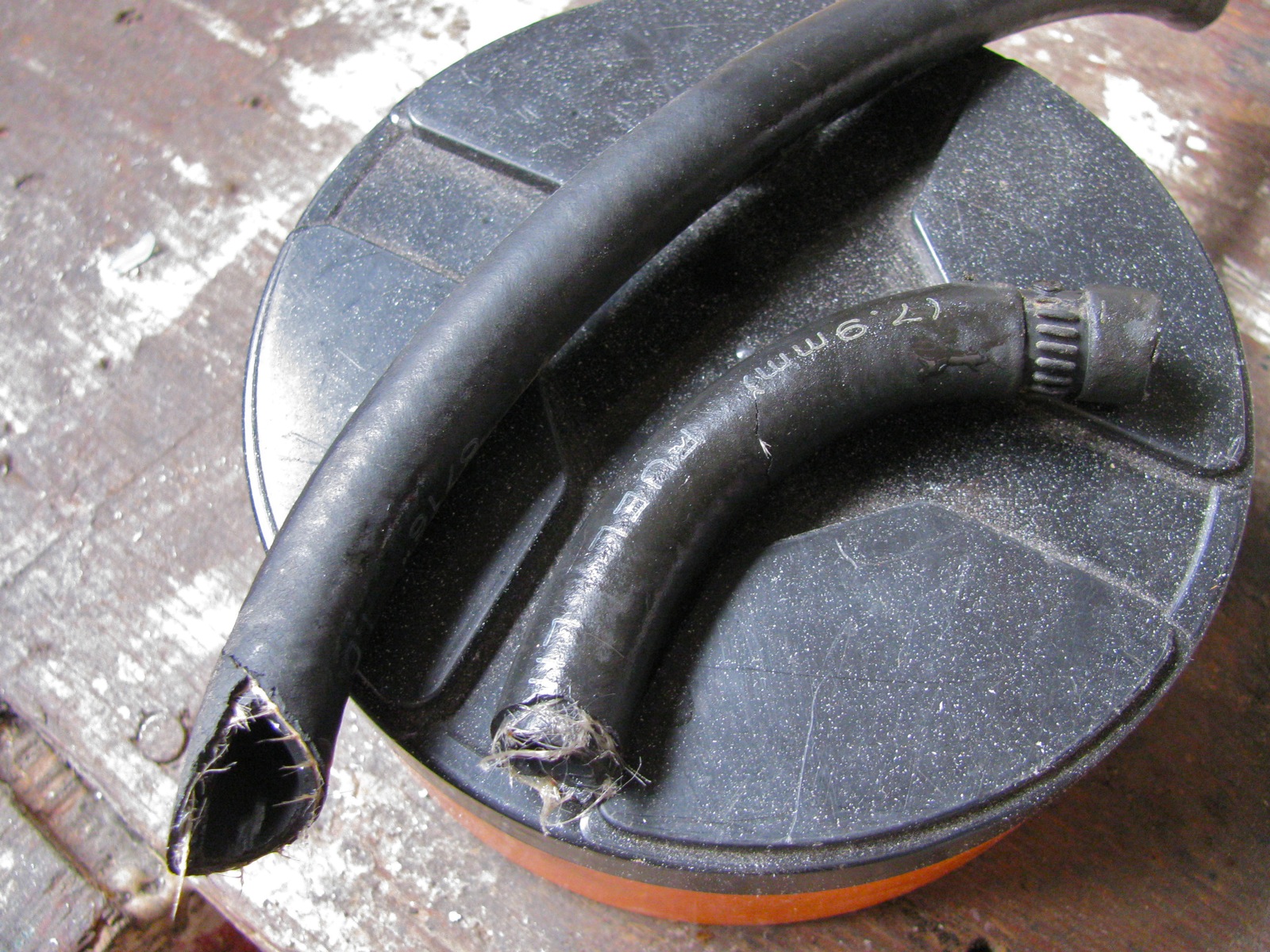 Te previous owner had used fuel line hose, and it was hard and brittle.
