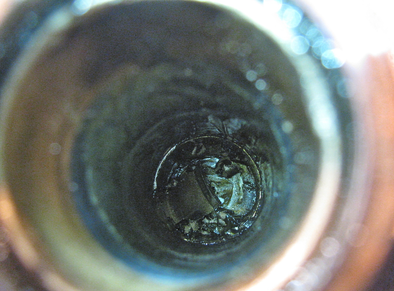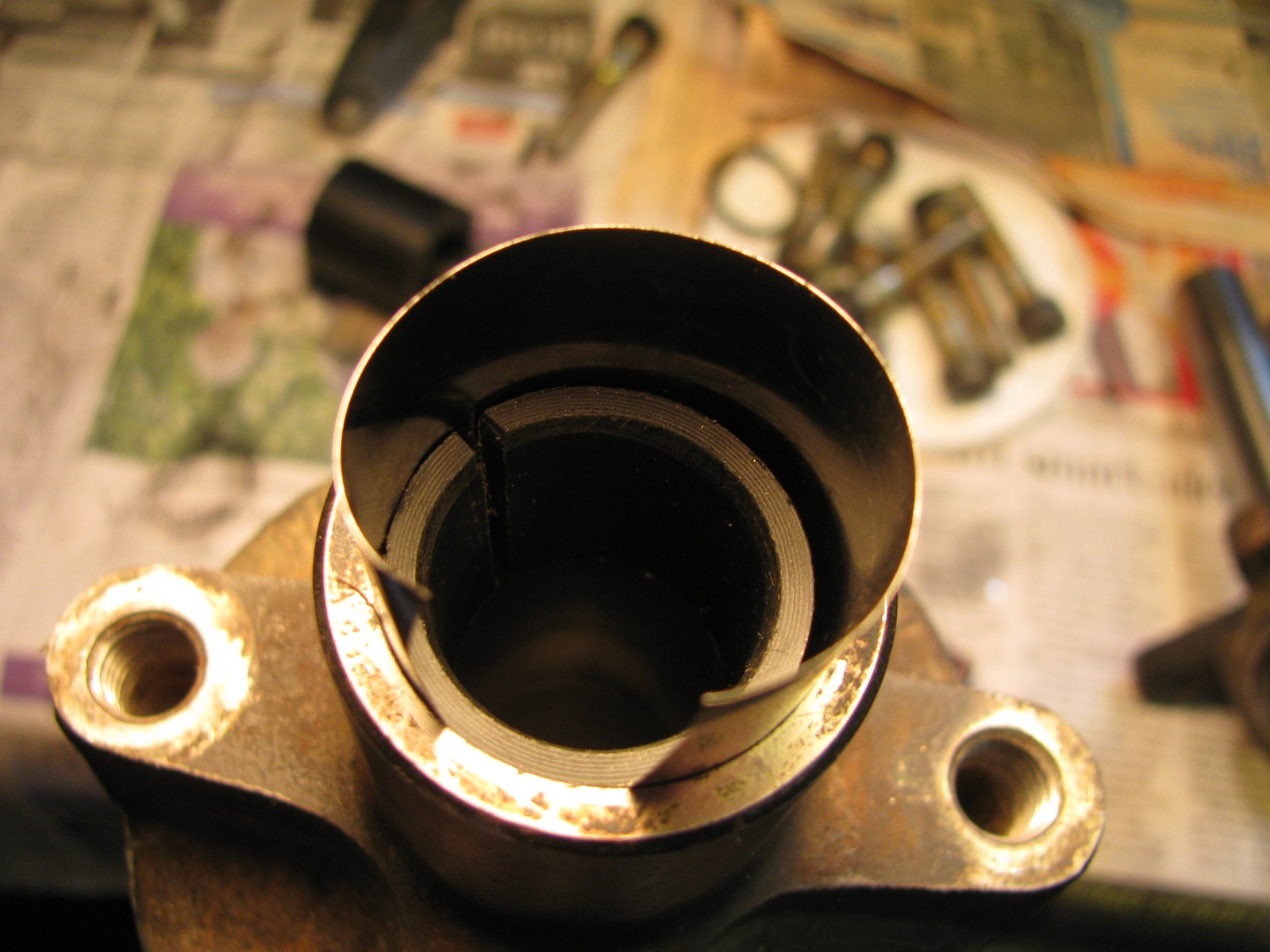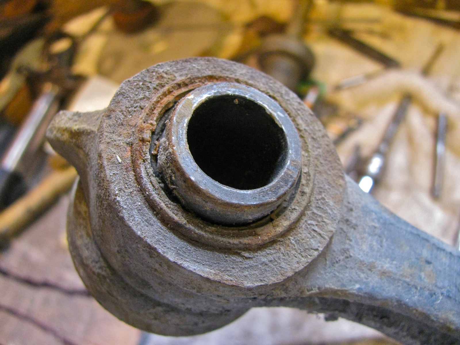 Bits and pieces of the bushing. After I knocked the fragments out I could see the aforementioned lip. I didn’t feel very happy at that point.