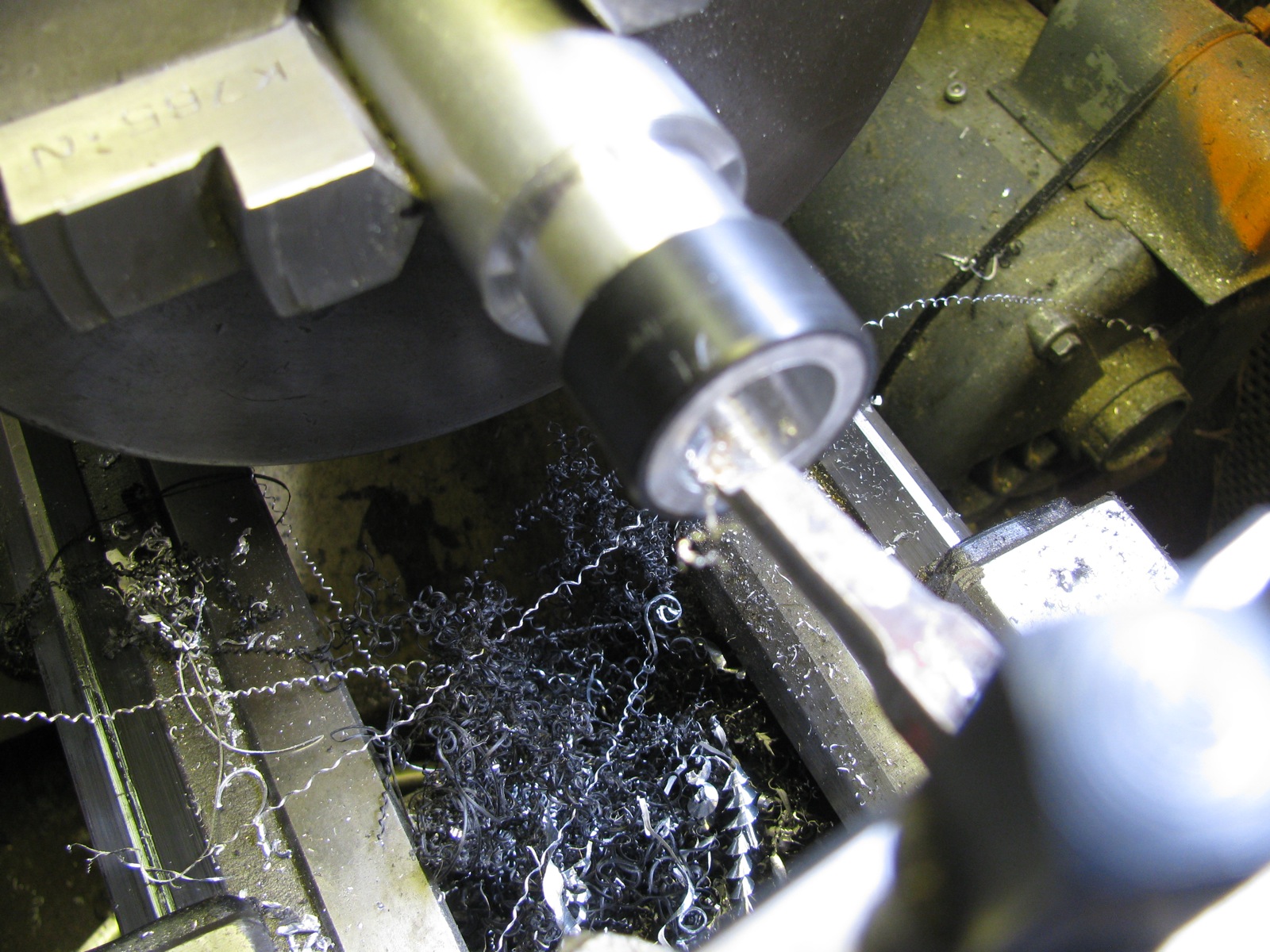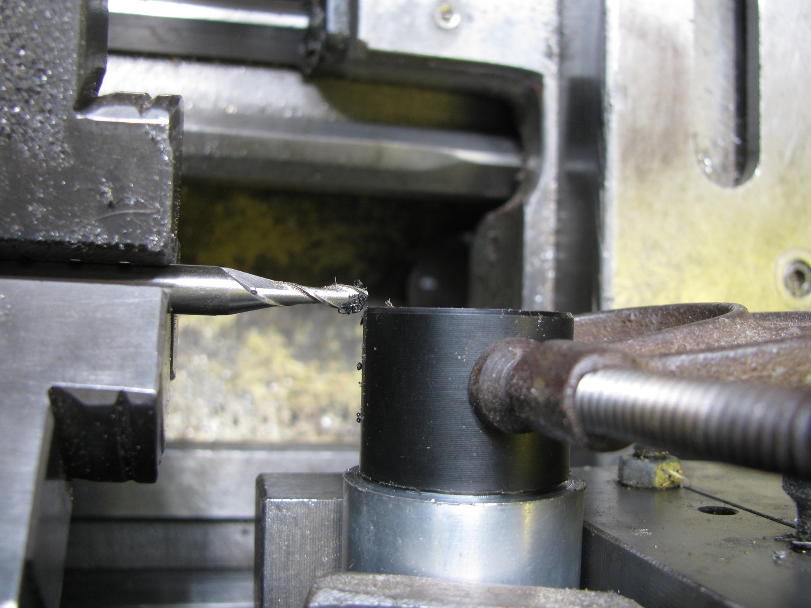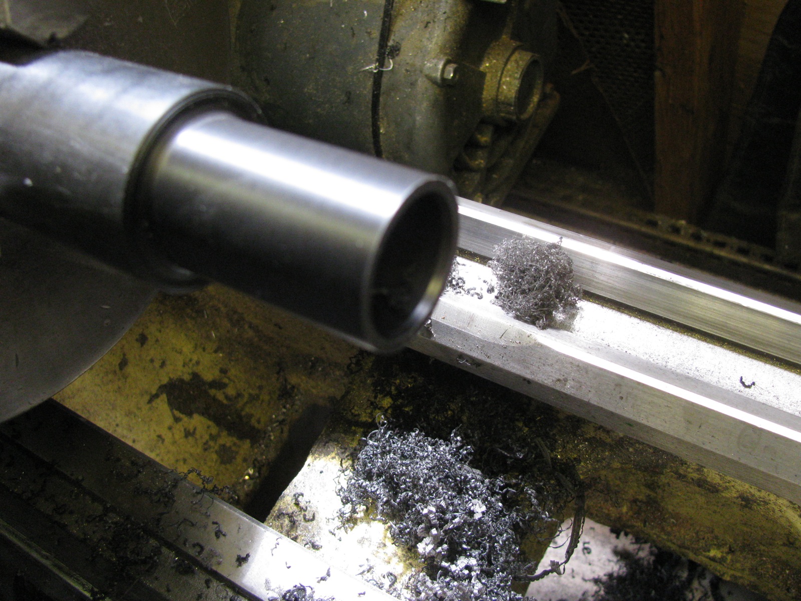 Then to get the bushing off the mandrel, I bored out the end of the mandrel.