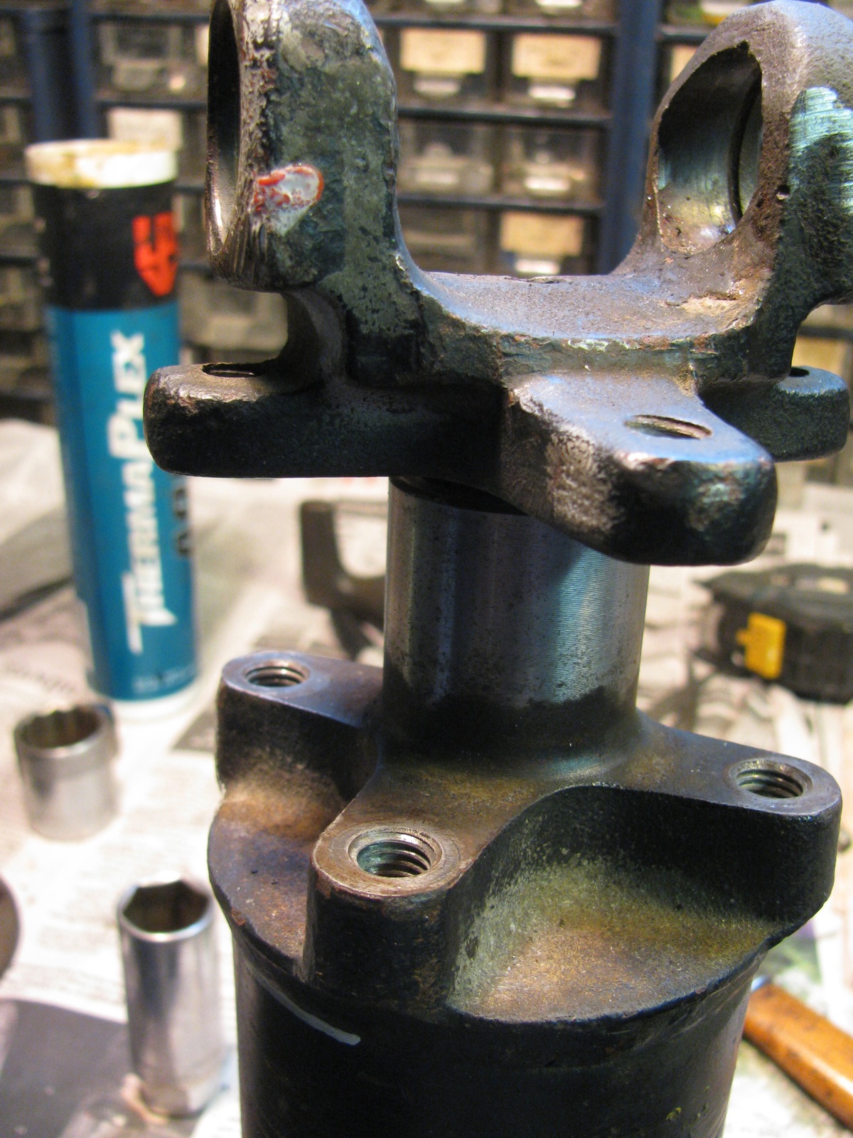 Here’s the old oily dirty simple version. oh and you can see the guide bushing in its bracket. And I had put in a zerk fitting on the cup.. why? for gods sake.