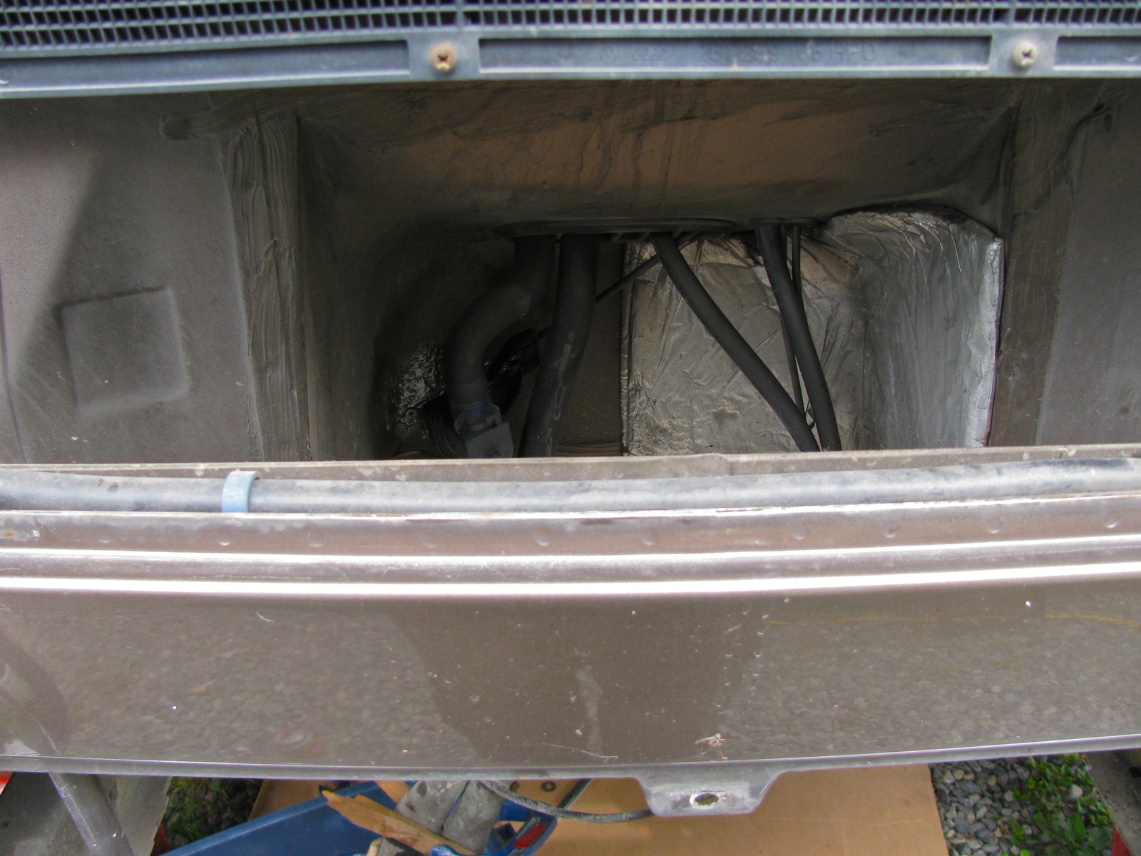 Not really much to add to the previous rad replacement expect that it is my van (’86 syncro) and I thought I’d make it a post just for my documentation/memory aid purposes. I suspected my rad needed replacement for no other reasons than I think it is the original rad and that I noticed the rad fan coming on more often when idling after a hwy drive. The replacement is a Behr unit, made in South Africa. The old rad still had the a/c condensor rad attached in front, probably not helping heat escapement. The new rad did feel lighter than the old one, whether this is due to deposits in old rad or construction details I can’t say. No real details to note except that it is a pretty easy job. I clamped off the coolant lines so a total coolant replacement was not done, I glued on the little rubber washers on the spikes on top and bottom of the rad (so that they didn’t fall off during installation, and I sprayed Fluid Film on exposed fasteners in the general area. After install and bleeding, I have only idled van long enough (took 20 minutes) to get first stage of fan to come on, no road test yet.