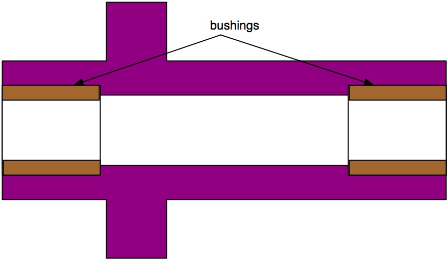 Here is a cartoon cross-section of the end of propshaft that houses the bushings.