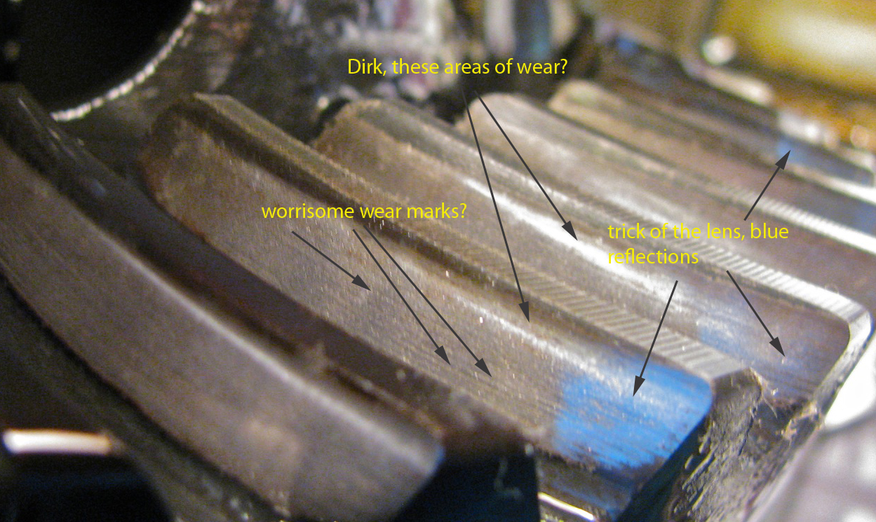 Addendum: Dirk over on the IG16 forum, wondered if the ring gears did actually show unusual wear. He pointed to lines parallel to the teeth. I don’t think that these marks are anything to worry about.