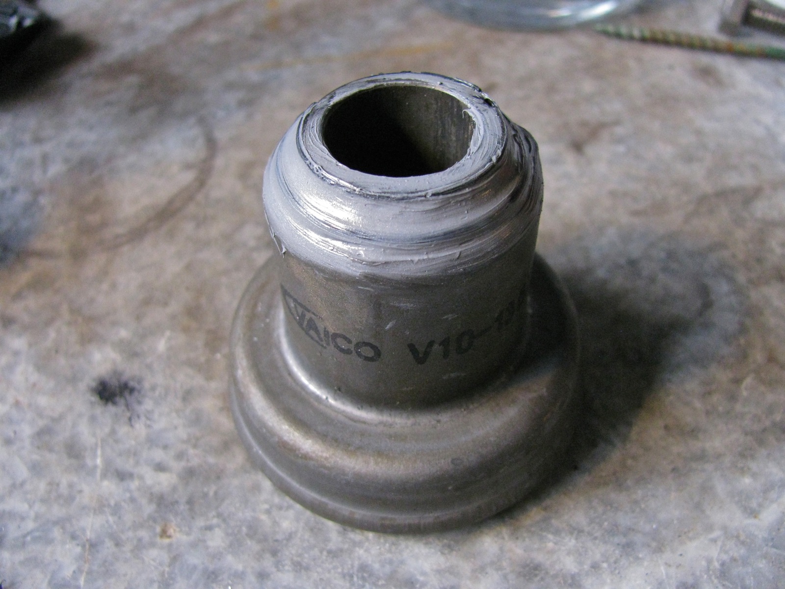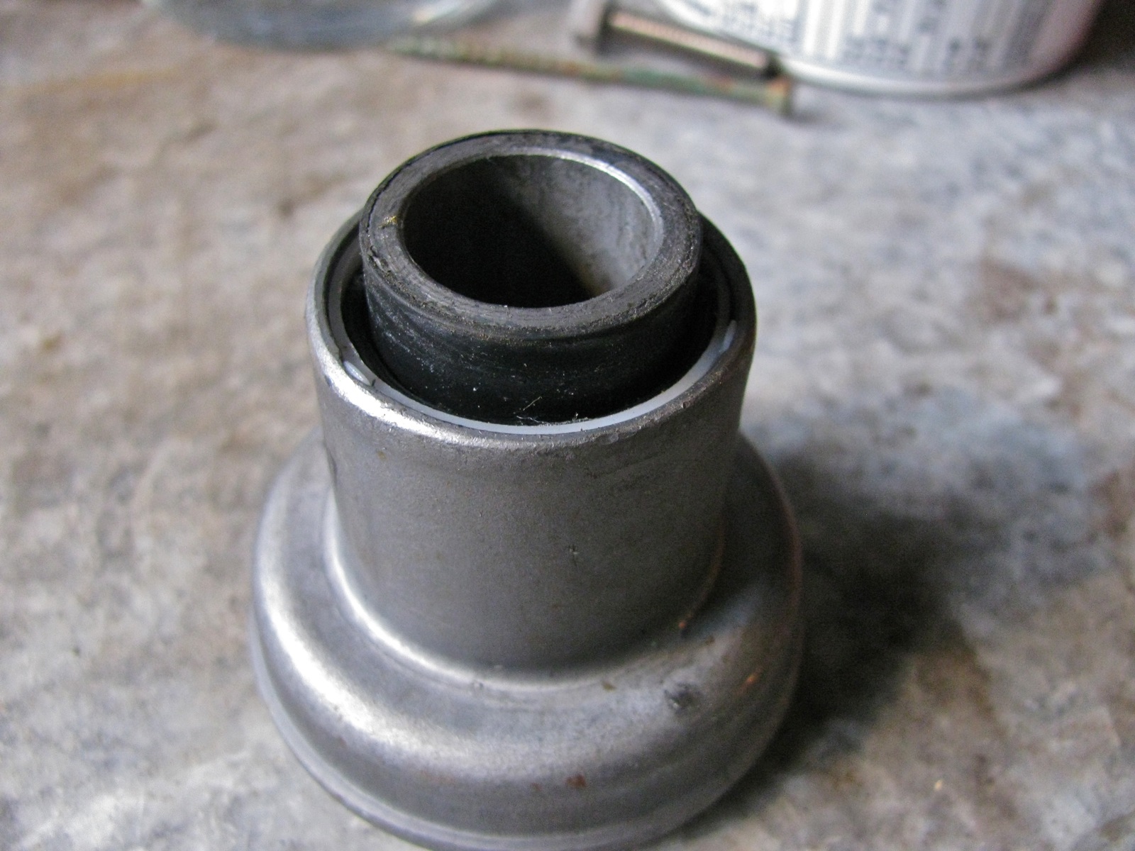 And as I tried to install it, I realized I had no way of holding it compressed to get into the narrow bore, no grip after it goes into outer bushing area. Oh, btw, this is how the bushing should appear when it is finally in place at the bottom of the housing.