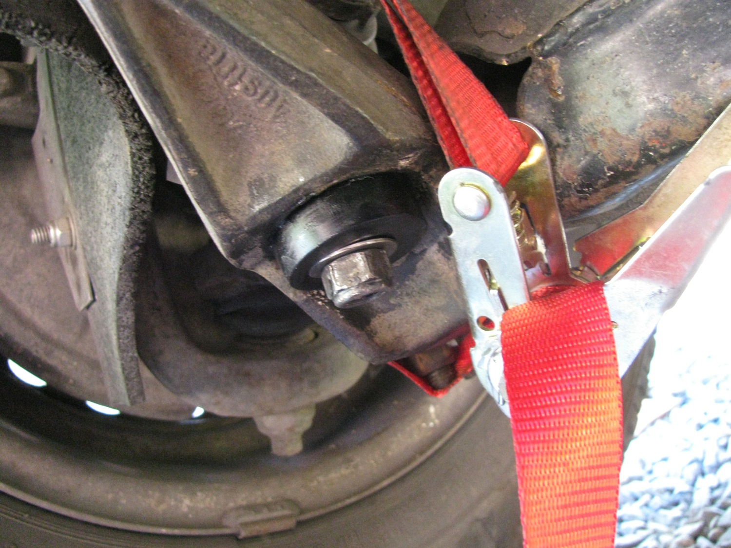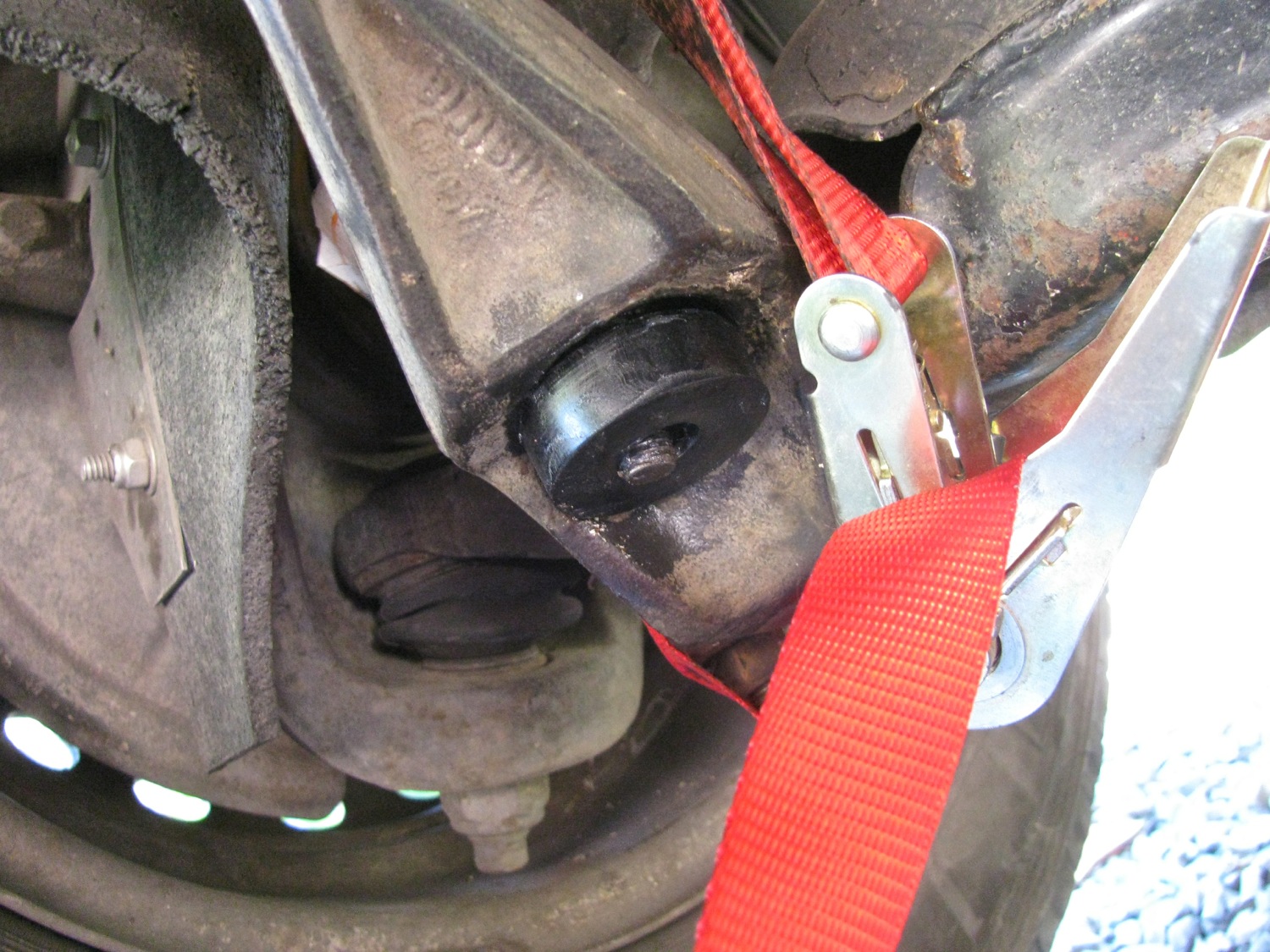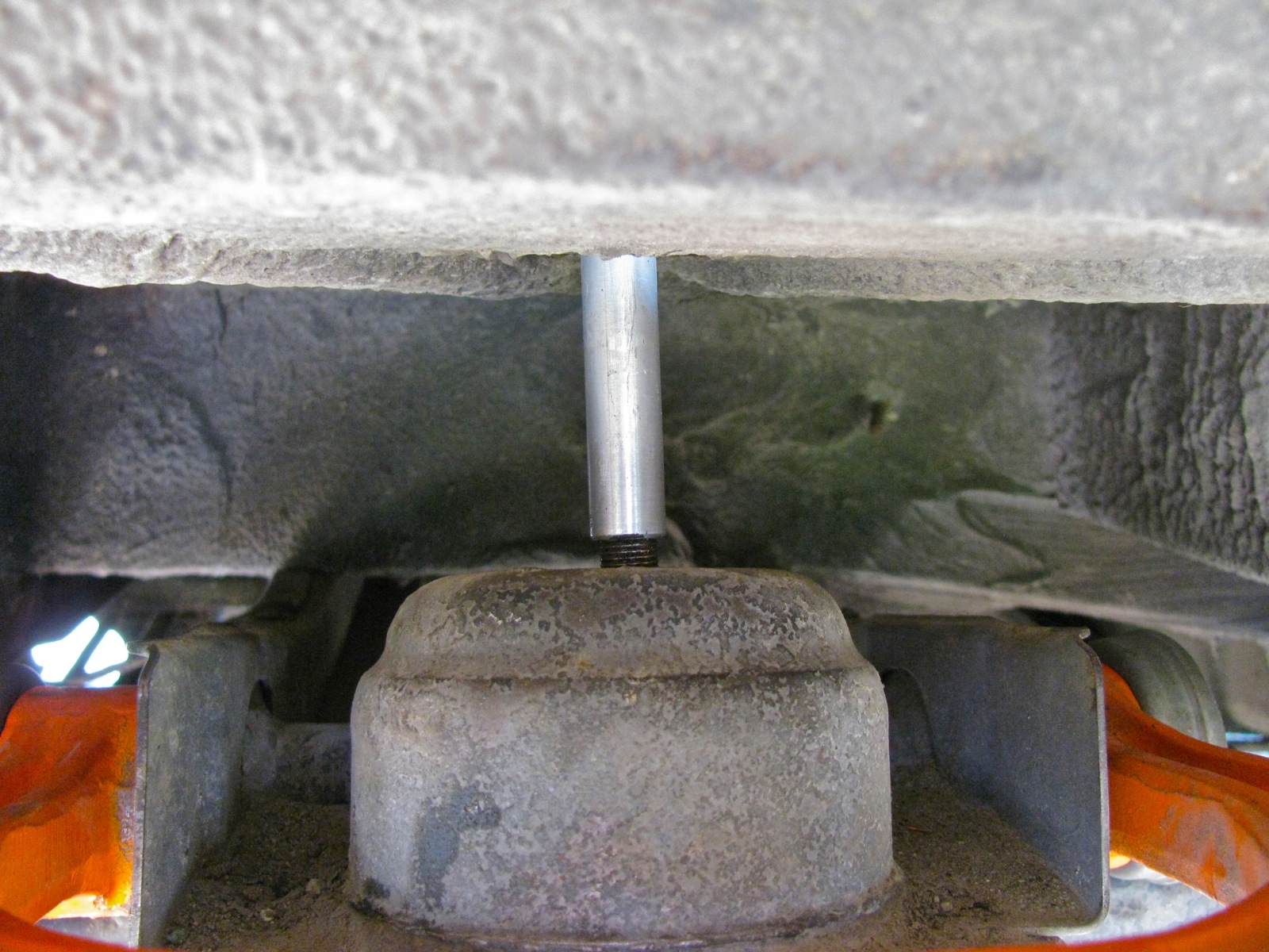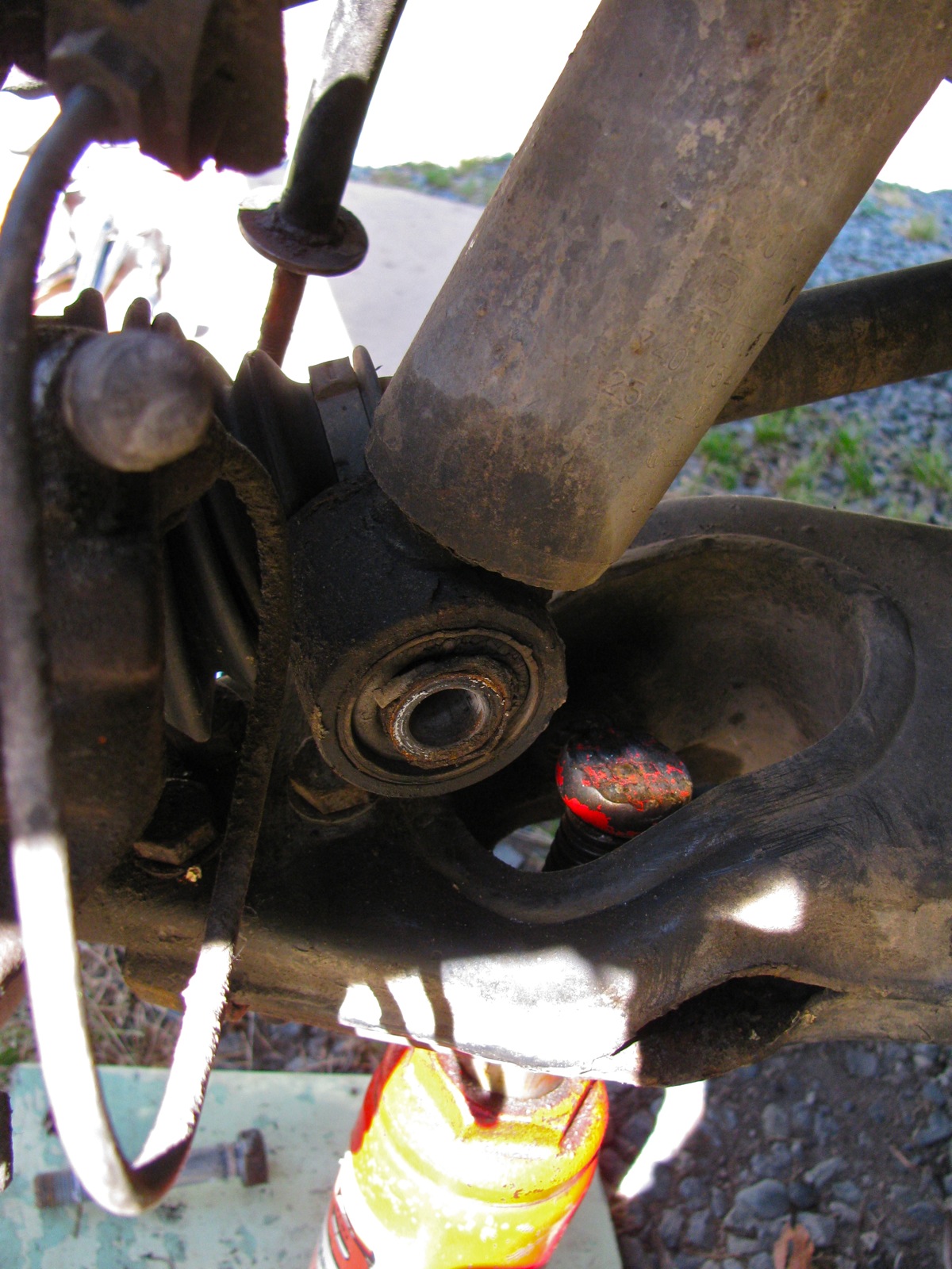 Some tubular spacers, lube, and a nut and the bushing ( already fully seated in the drop link by squeezing the two together in a vise) and hey presto, the bushing and link can be easily pushed on to the sway bar. Hey don’t rely on this pic for correct orientation of the sway bar bend to the sway bar, I was just doing a test run and didn’t take care. I did get it right in the final assembly… I think 🙂