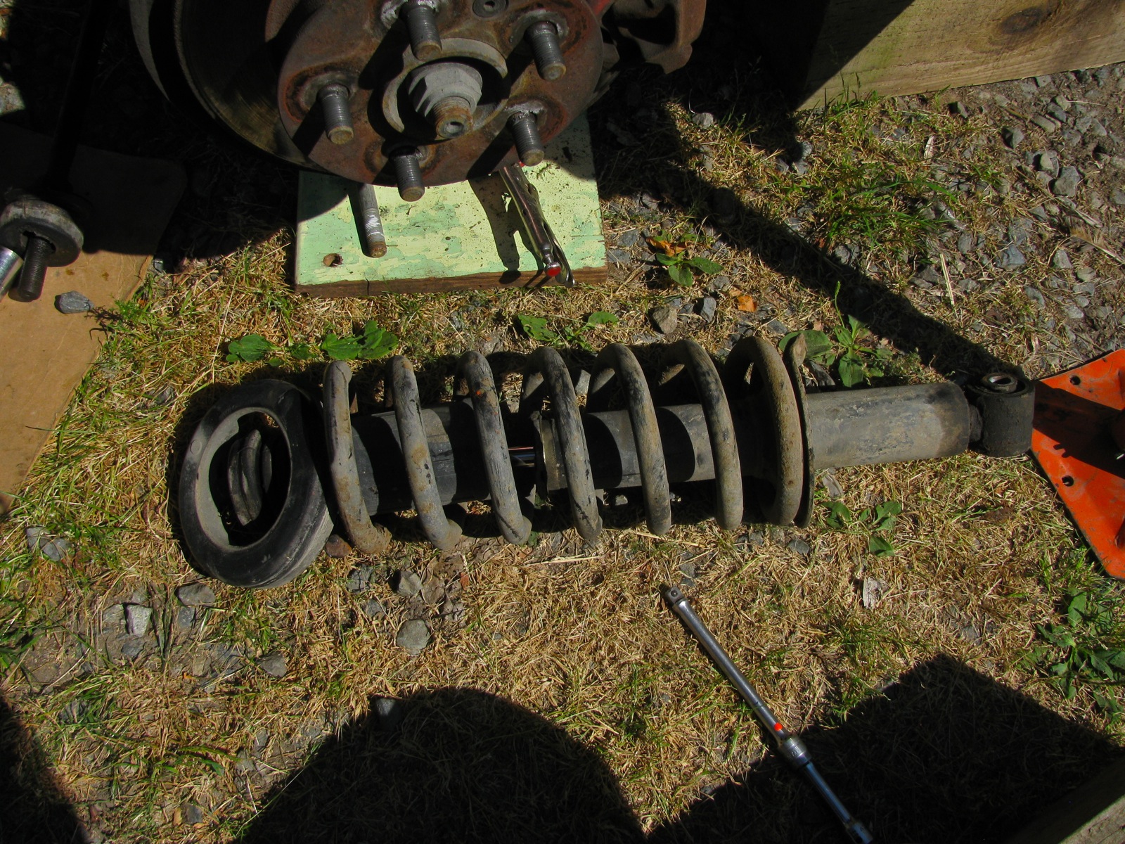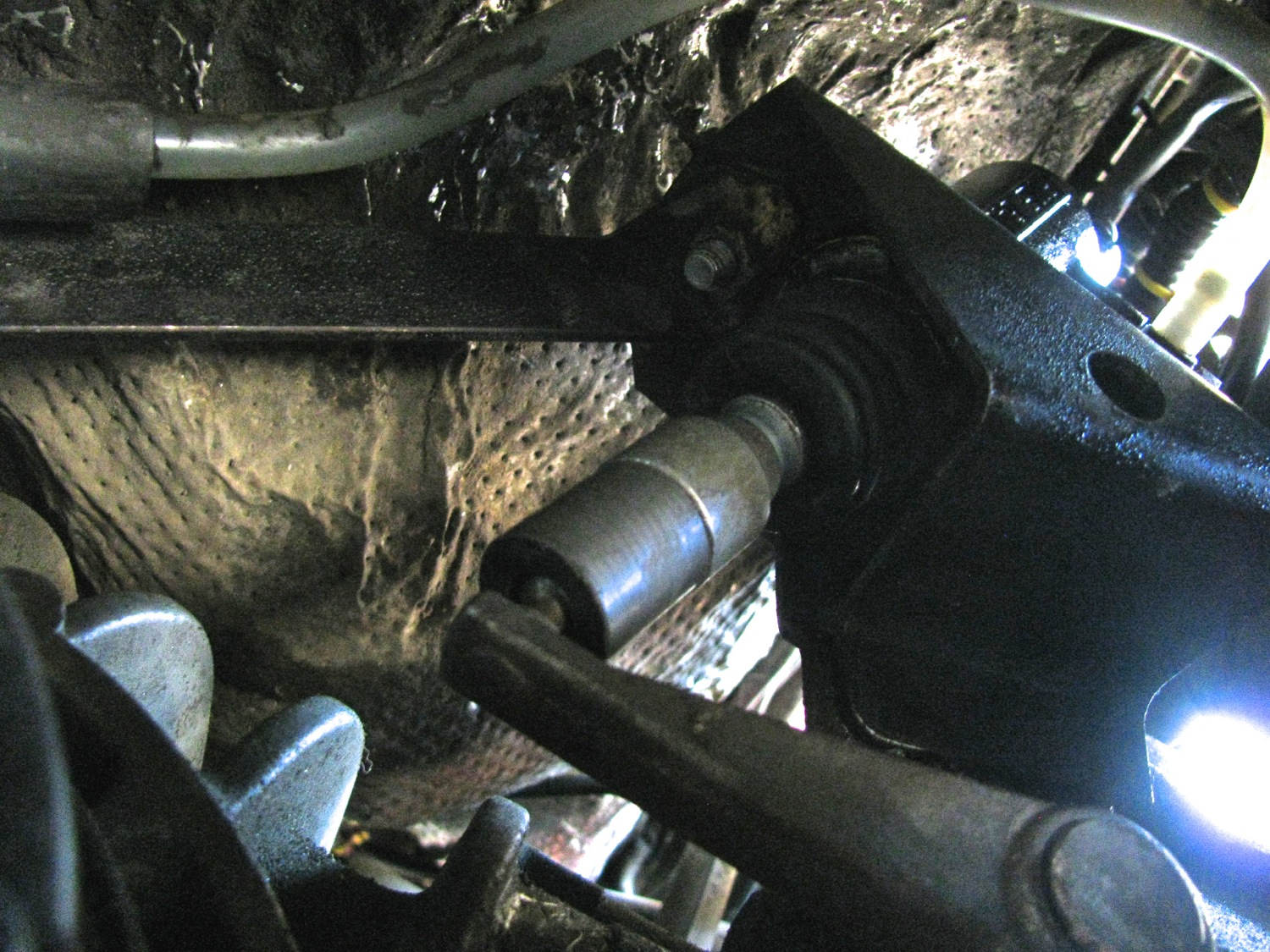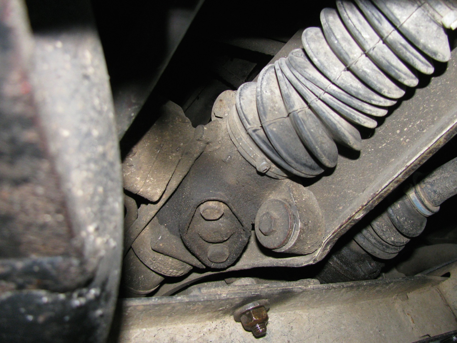 Driveshaft disconnected from transmission. I found the boot ripped so I took driveshaft completely out. I had a ready to go spare axle assembly and I felt chuffed about that. This kind of preparedness doesn’t happen very often
