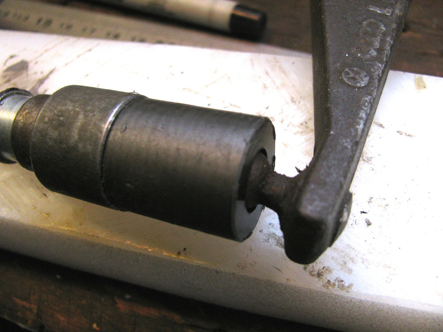 So what eh? Well now I made a bullet shaped tool, tapped for the 3/8″ bolt on the blunt end and tapped for 1/2 NC on the pointy end.