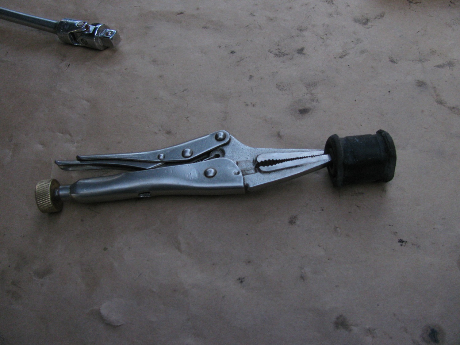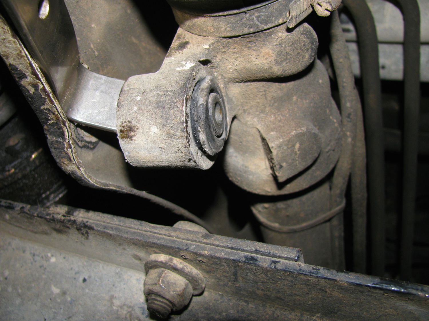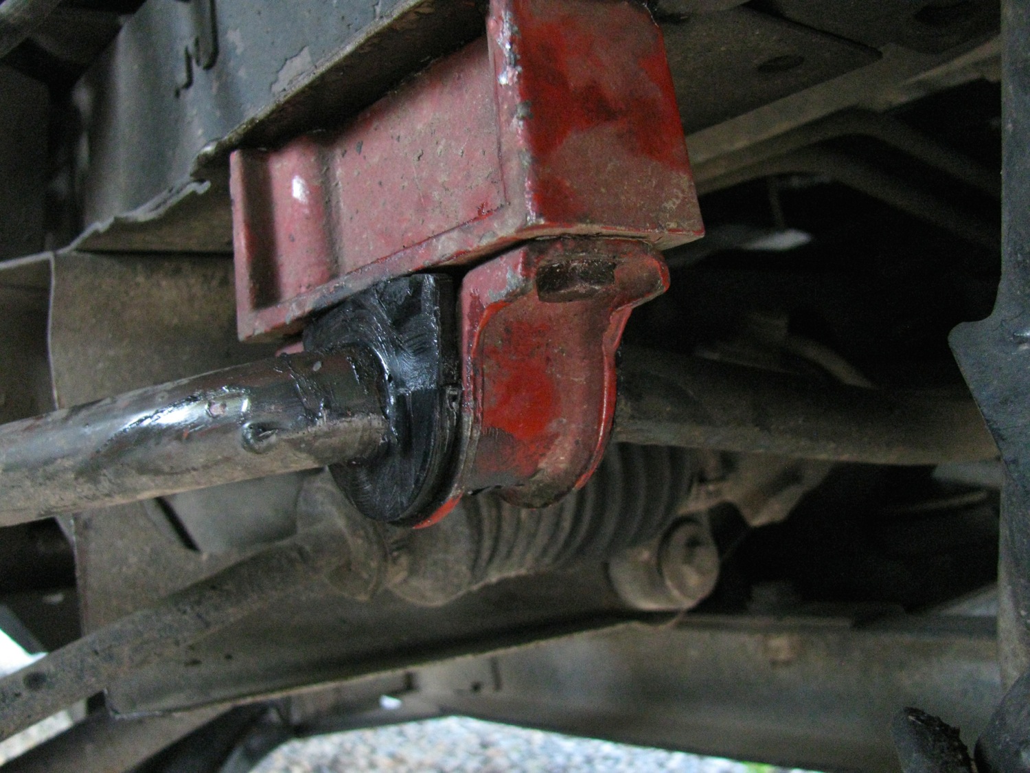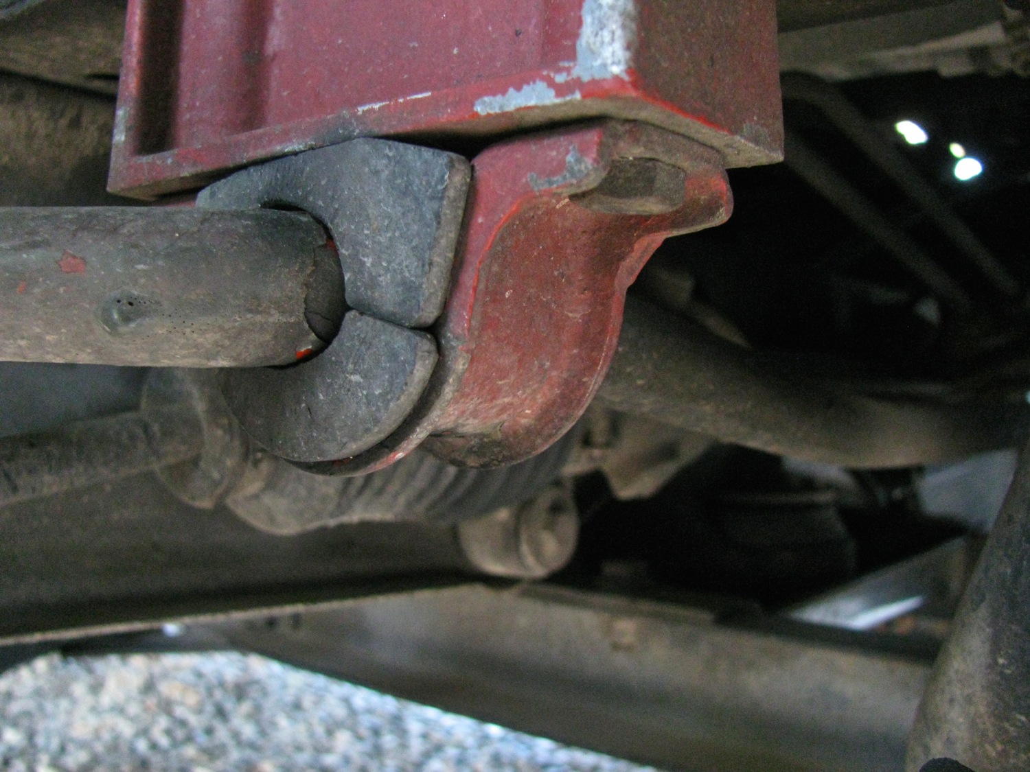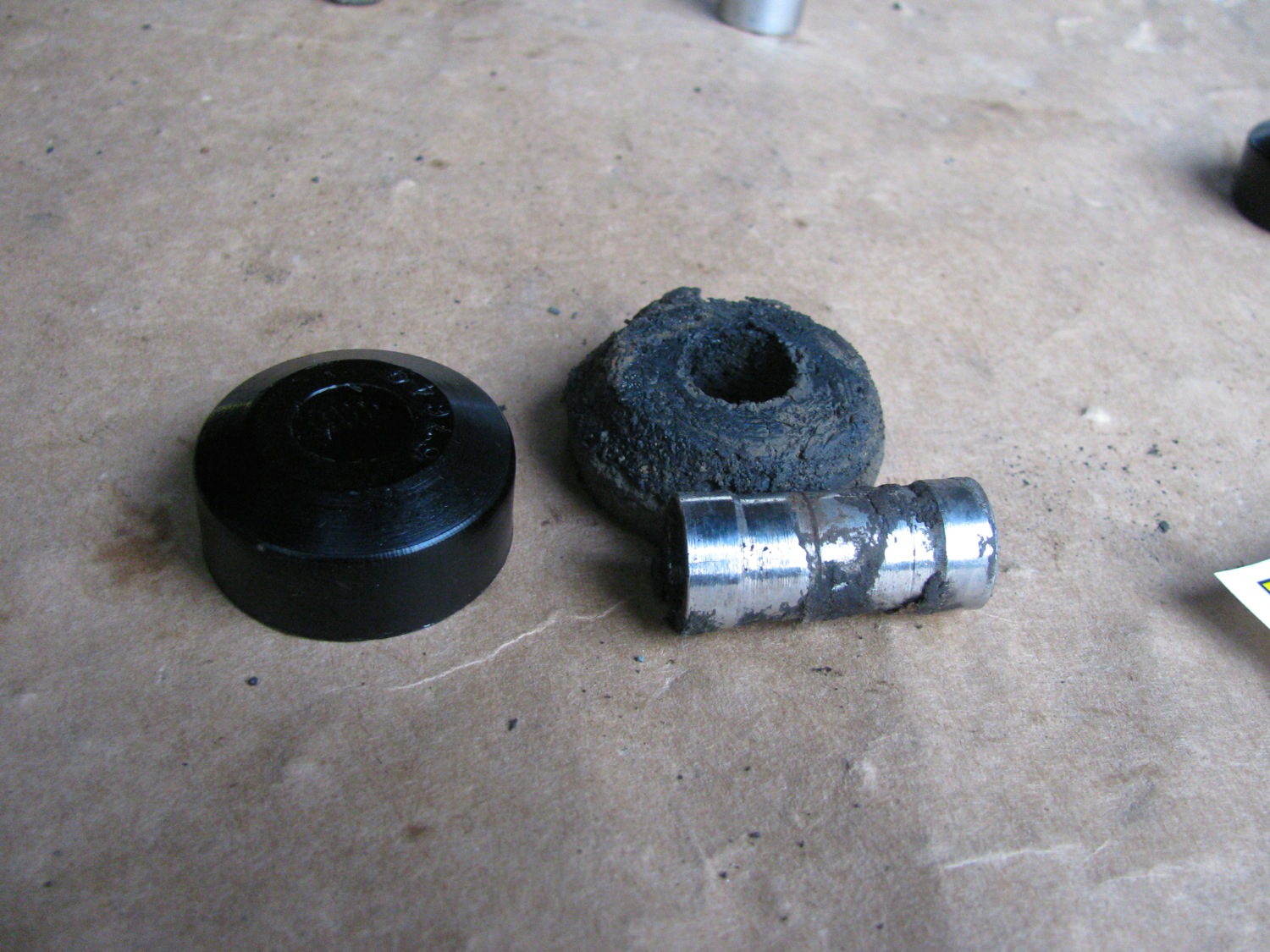 So first the easiest, the sway bar to body mount bushings. Here is a pic of the one of the original rubber bushings.