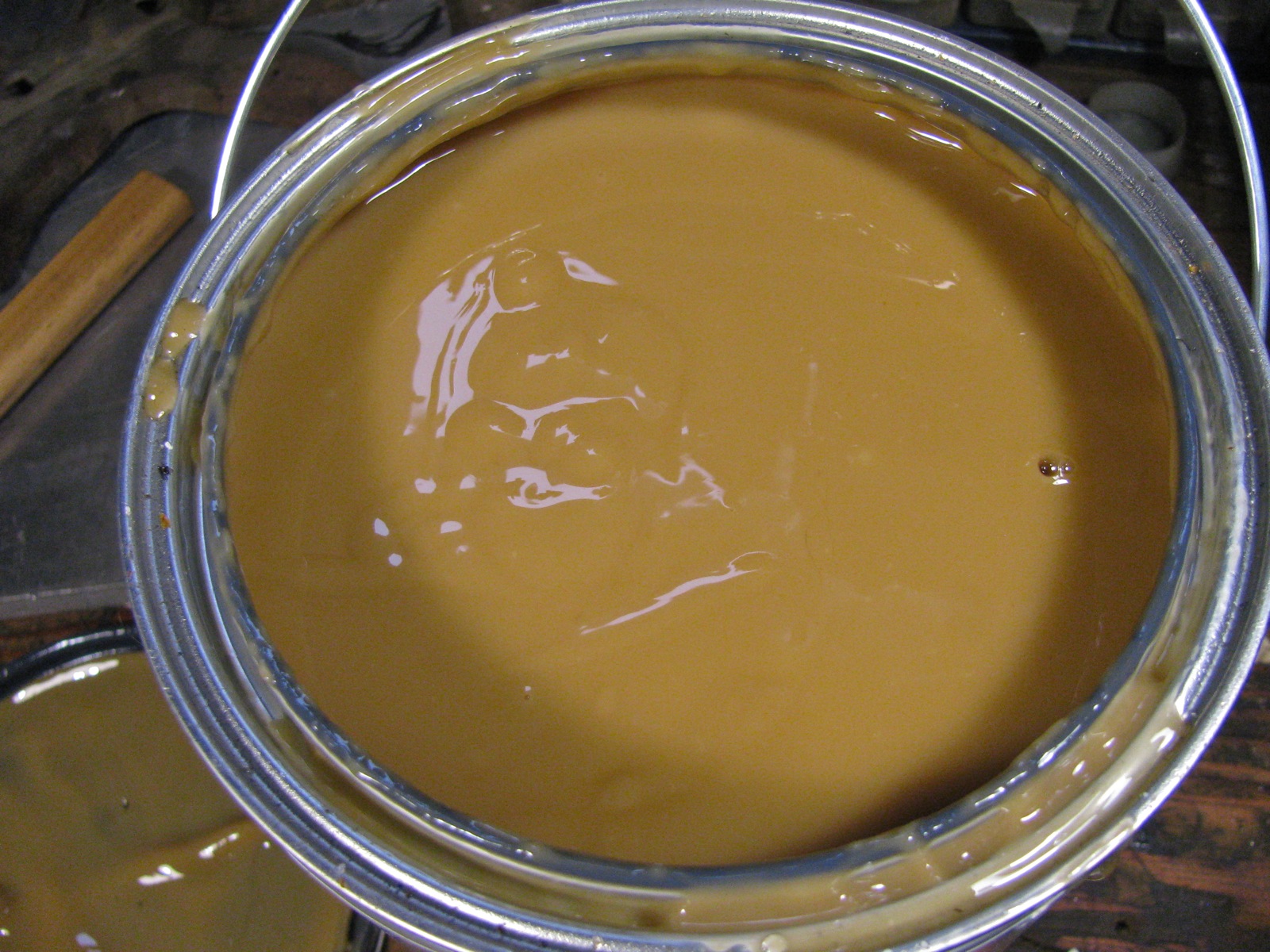 Have a look at this, a drop of Fluid Film (one of many around the workshop now) that fell onto the top of the new jerry can. I consider the grinding dust to be evidence of my hard work, not of sloppy housekeeping. Note the creeping wet spot.